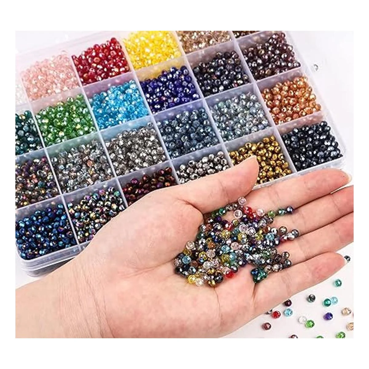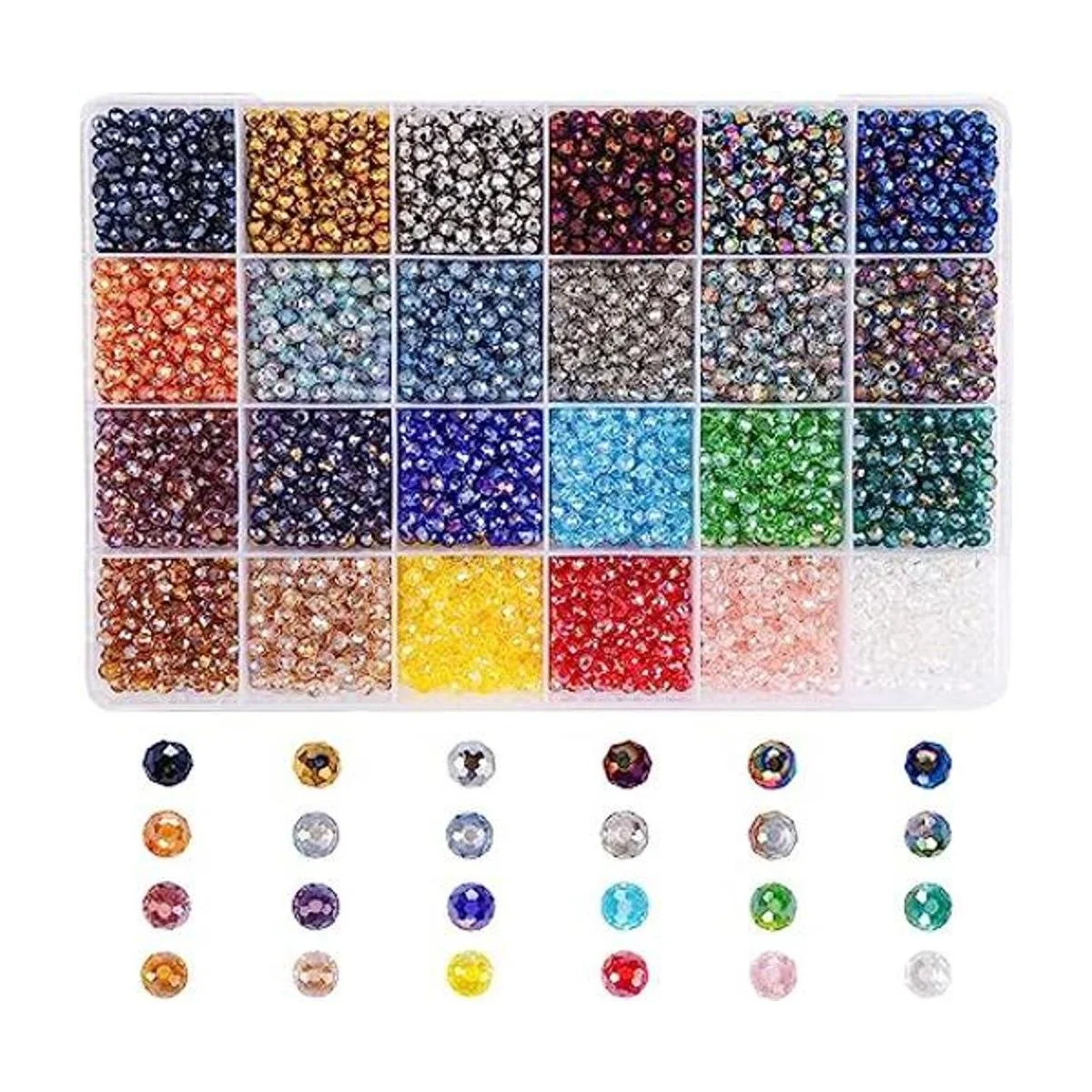 Suhome 4800 cuentas de cristal galvanizadas de 24 colores de 0.157 in, cuentas espaciadoras de forma de rondelle facetadas Briolette surtidas para manualidades, pulseras, aretes, collares, joyas