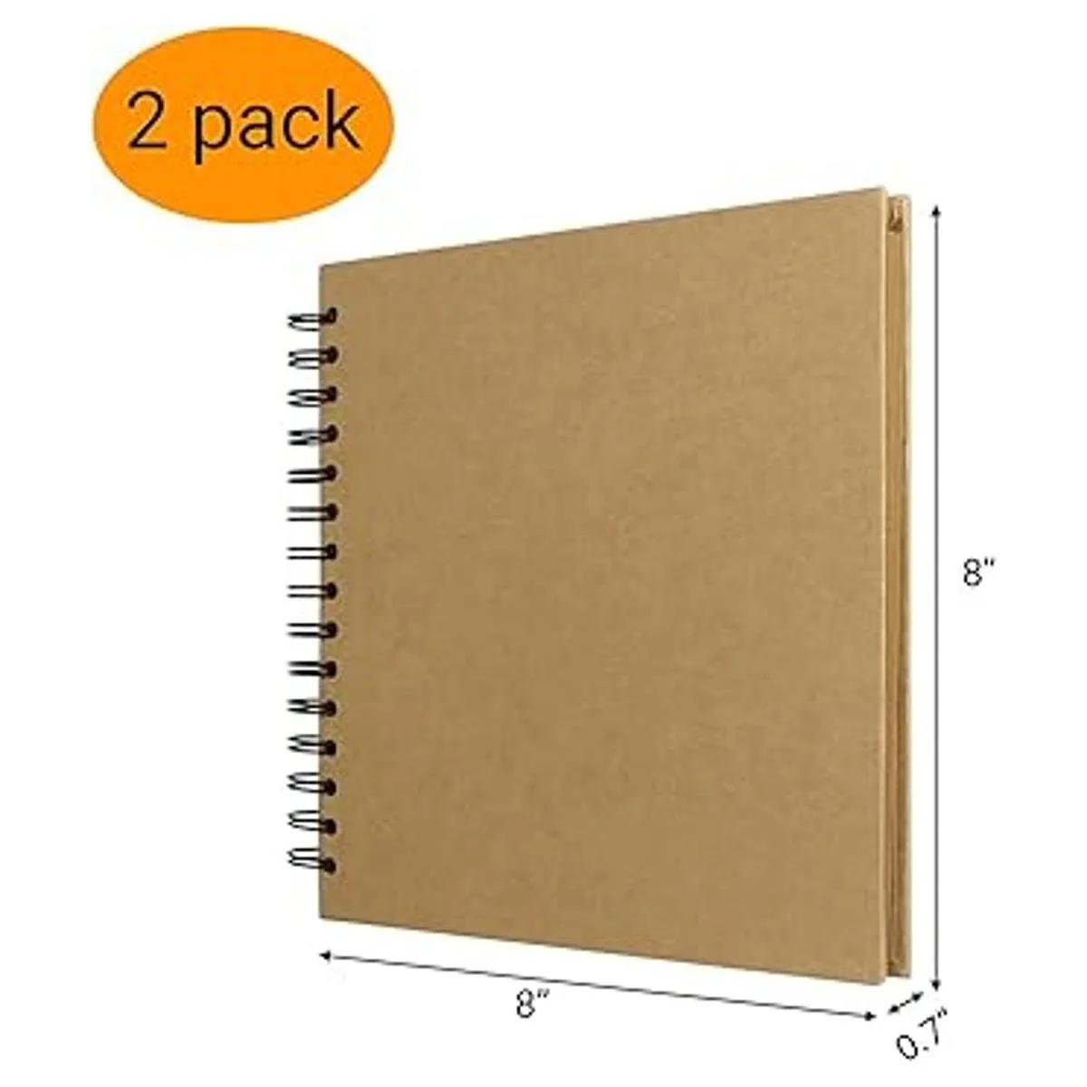suituts Paquete de 2 álbumes de recortes de 8 x 8 pulgadas, álbumes de recortes de papel kraft de tapa dura, álbum de fotos para arte infantil total 60 hojas