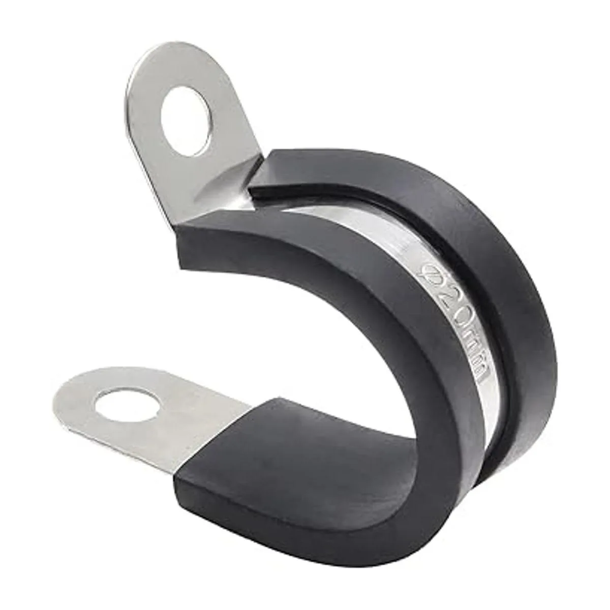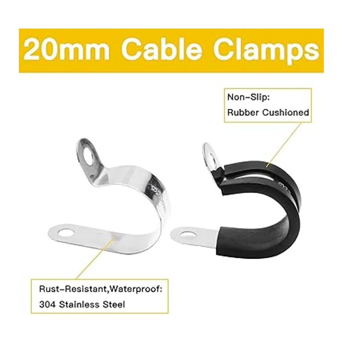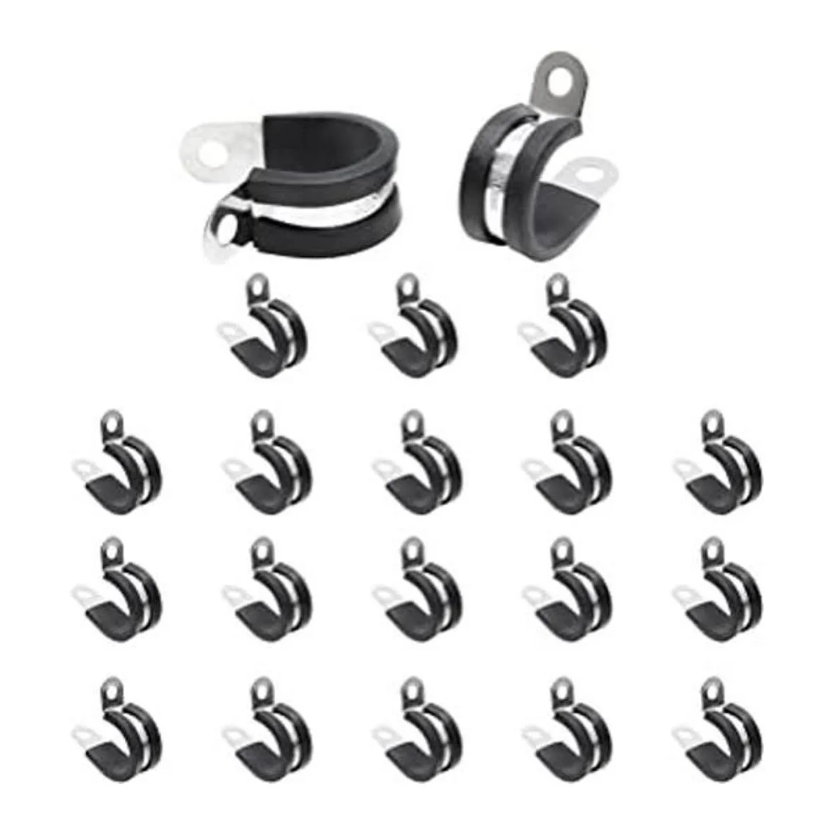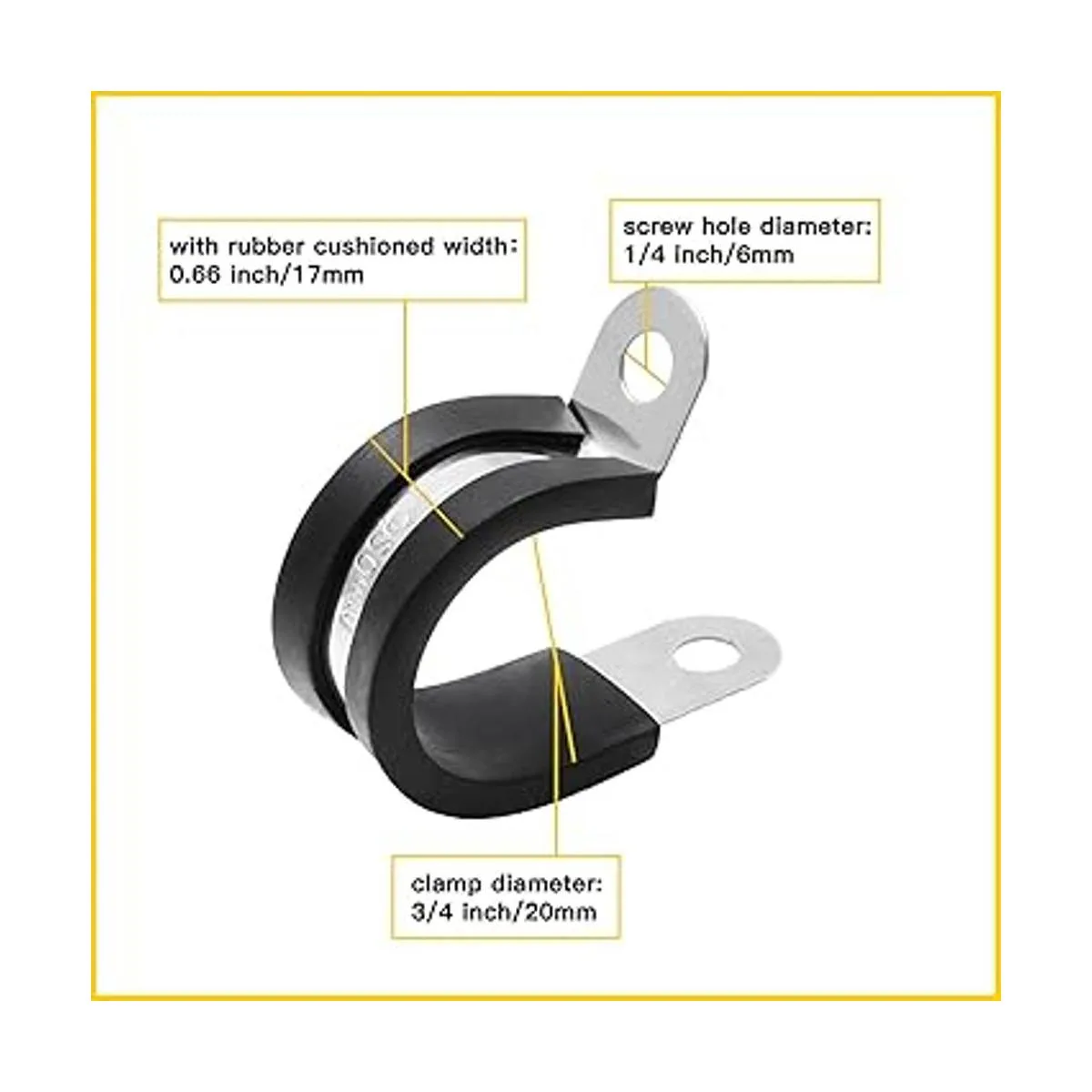 Suiwotin 20 abrazaderas de cable de 34 pulgadas 0.787 in, abrazaderas de alambre de acero inoxidable, abrazadera aislada de goma, abrazadera de conducto de metal para tuberías, tubos, manguera, cableado, cables