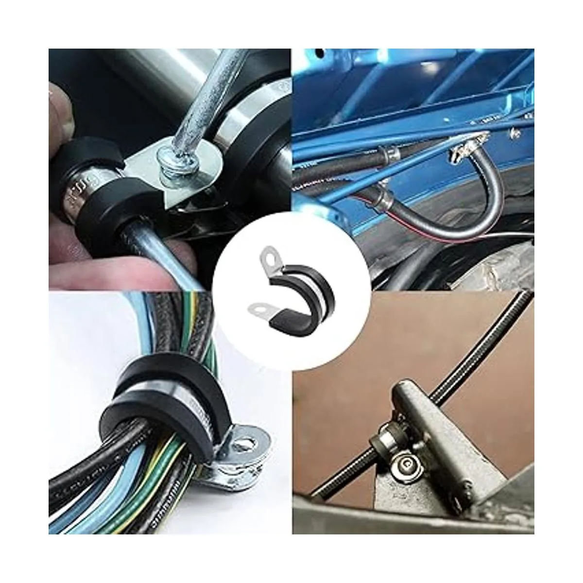 Amplia aplicación: diseñadas con tipo P, las abrazaderas de tubo son flexibles y fáciles de instalar y quitar para cables, mangueras, tubos, tuberías, líneas de combustible e instalación de cable de cable eléctrico. Ampliamente utilizado en el hogar, industrial, maquinaria, etc.