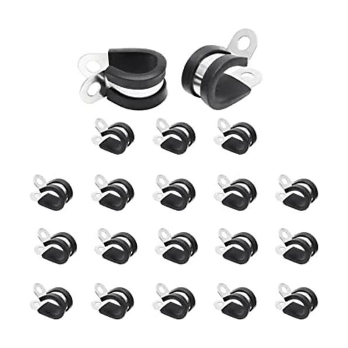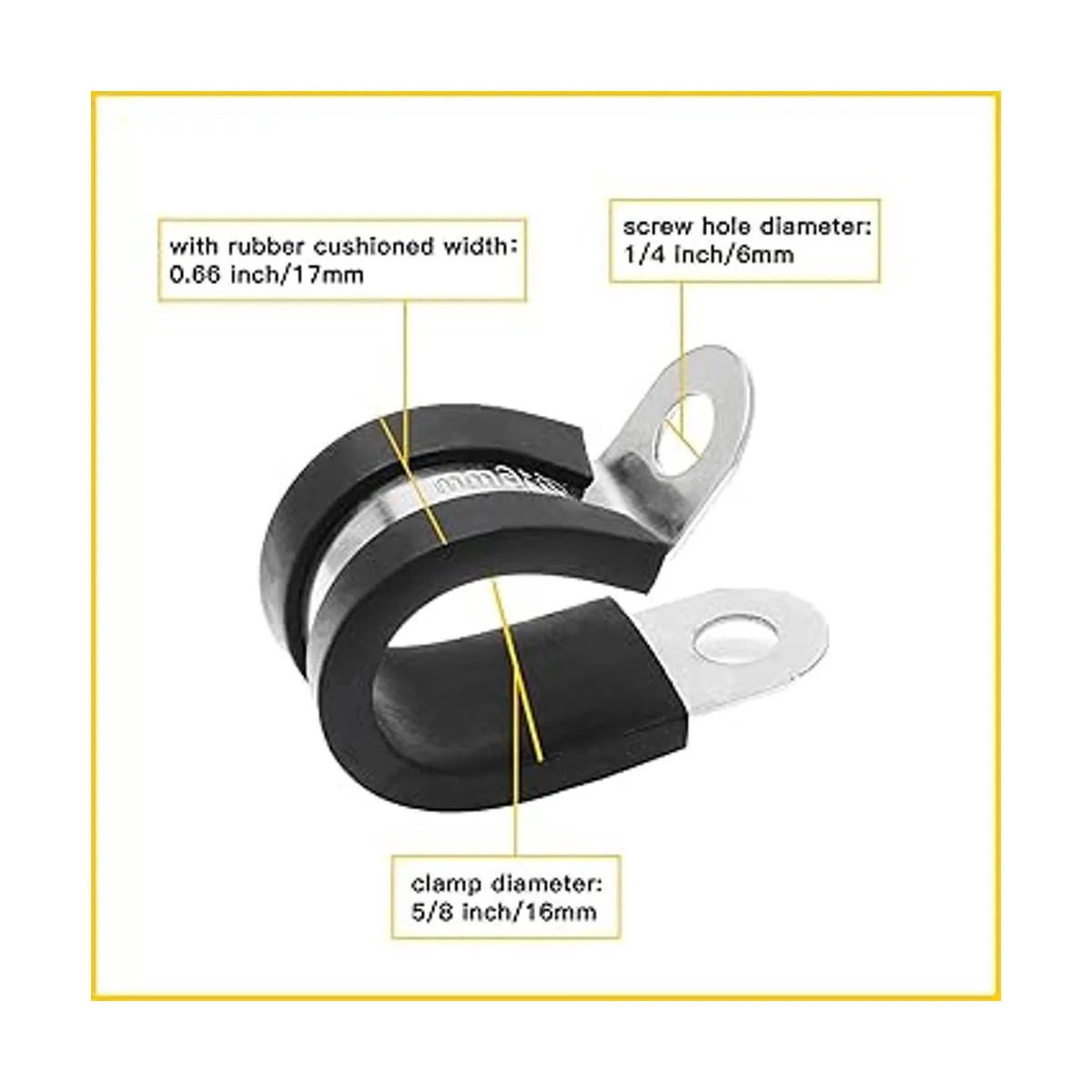 Suiwotin 20 abrazaderas de cable de 58 pulgadas 0.630 in, abrazaderas de alambre de acero inoxidable, abrazadera aislada de goma, abrazadera de conducto de metal para tuberías, tubos, manguera, cableado, cables