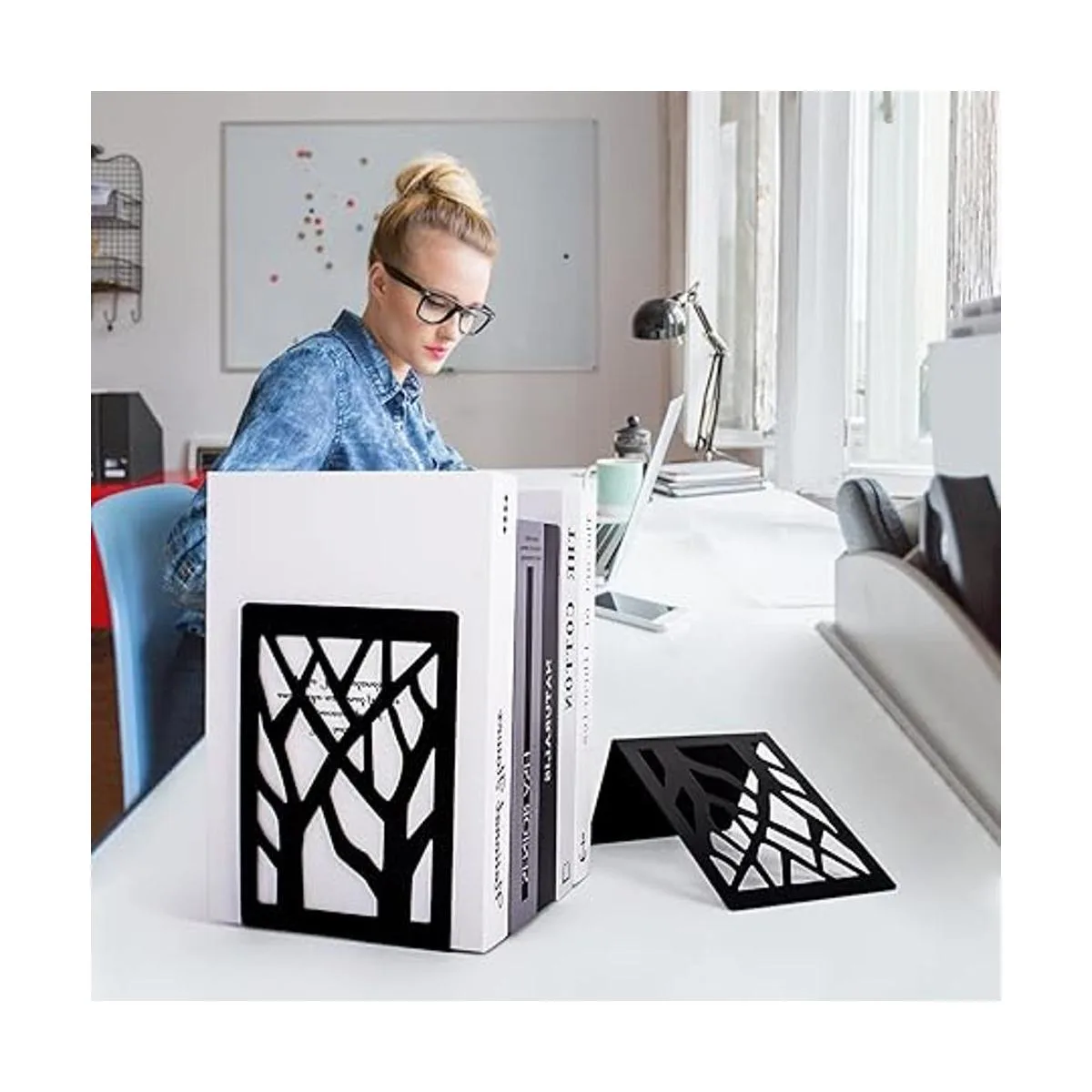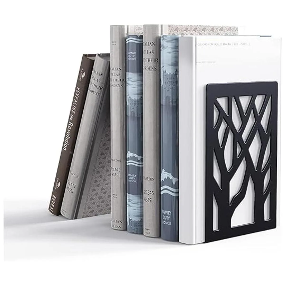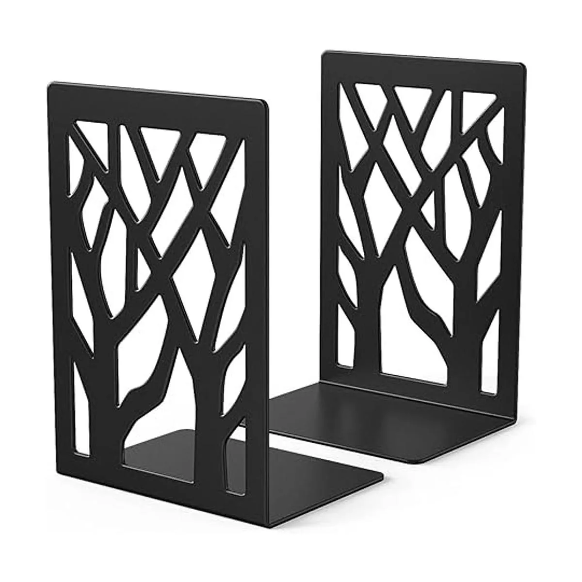 Sujetalibros de metal, extremos de libros pesados para estantes, soporte para estantes de libros, decoración del hogar, soportes negros para sujetalibros 2