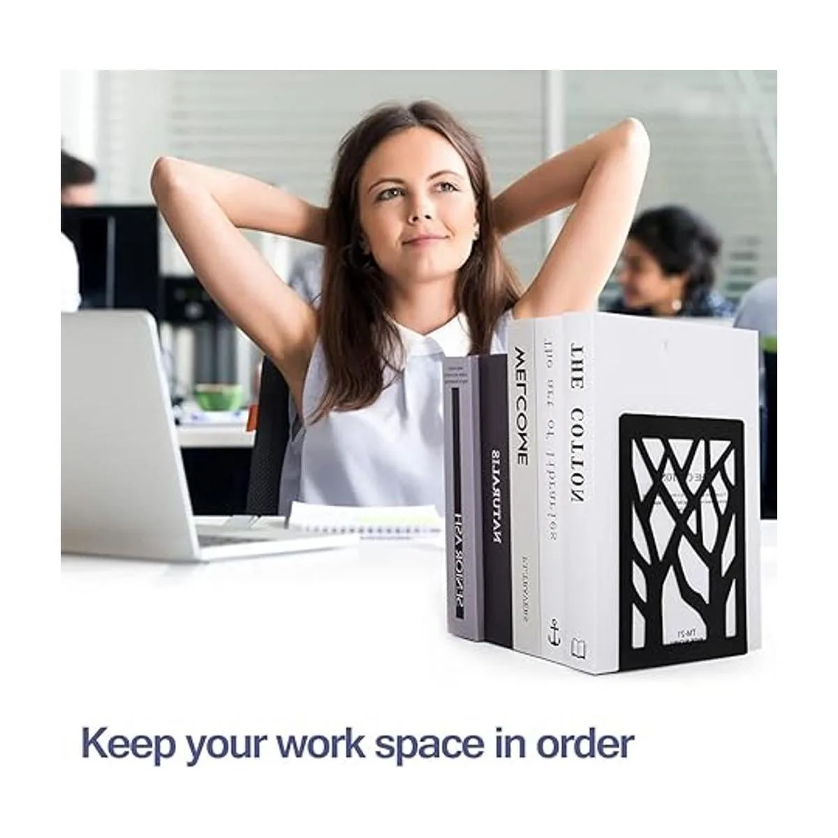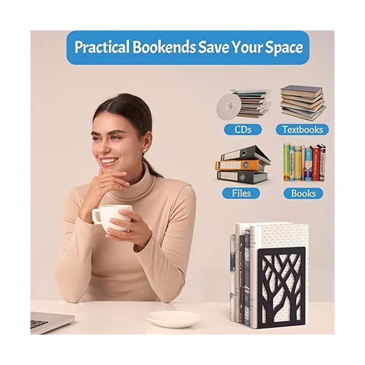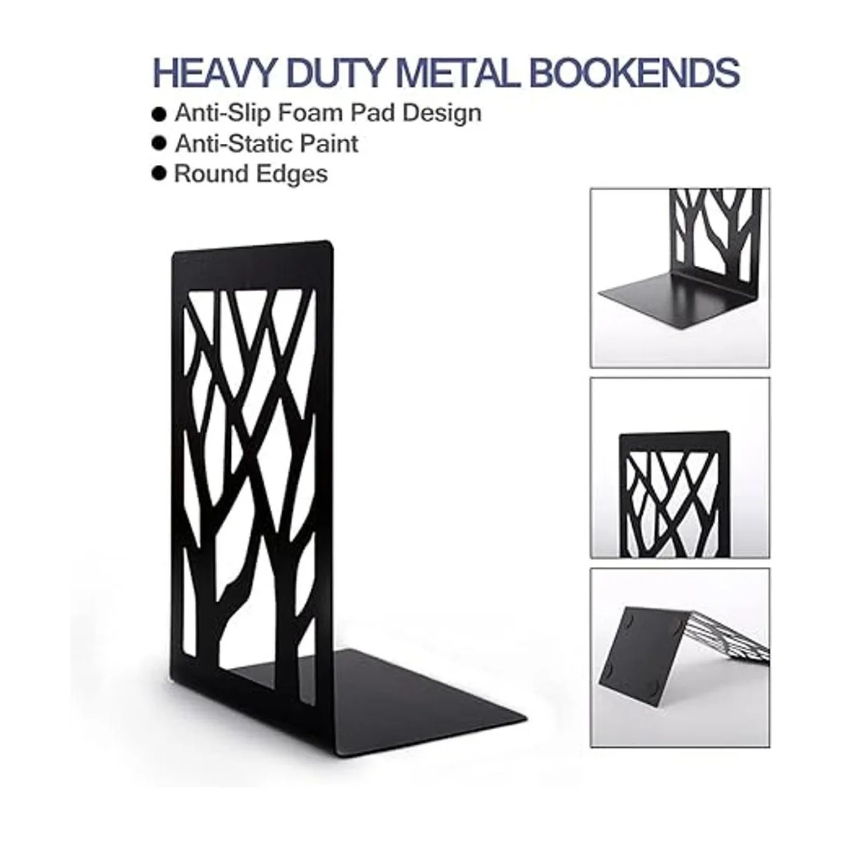 Sujetalibros de metal, extremos de libros pesados para estantes, soporte para estantes de libros, decoración del hogar, soportes negros para sujetalibros 2