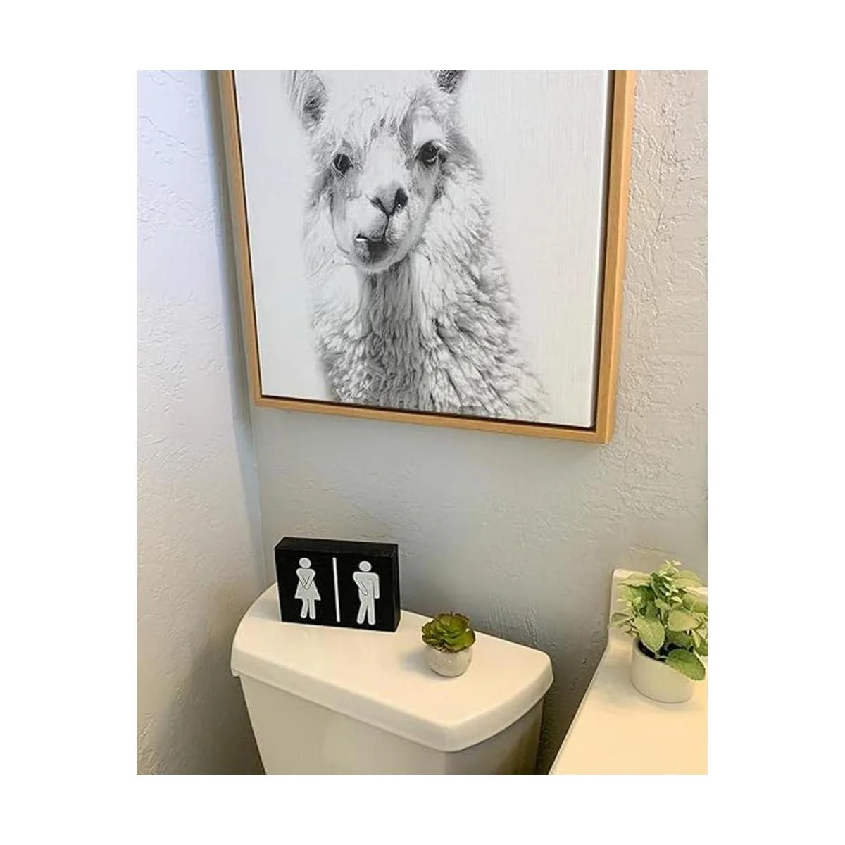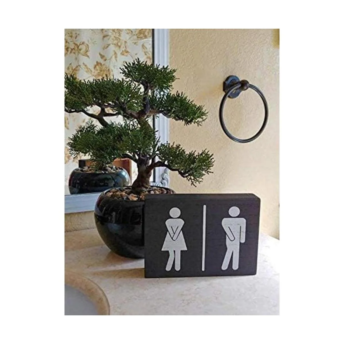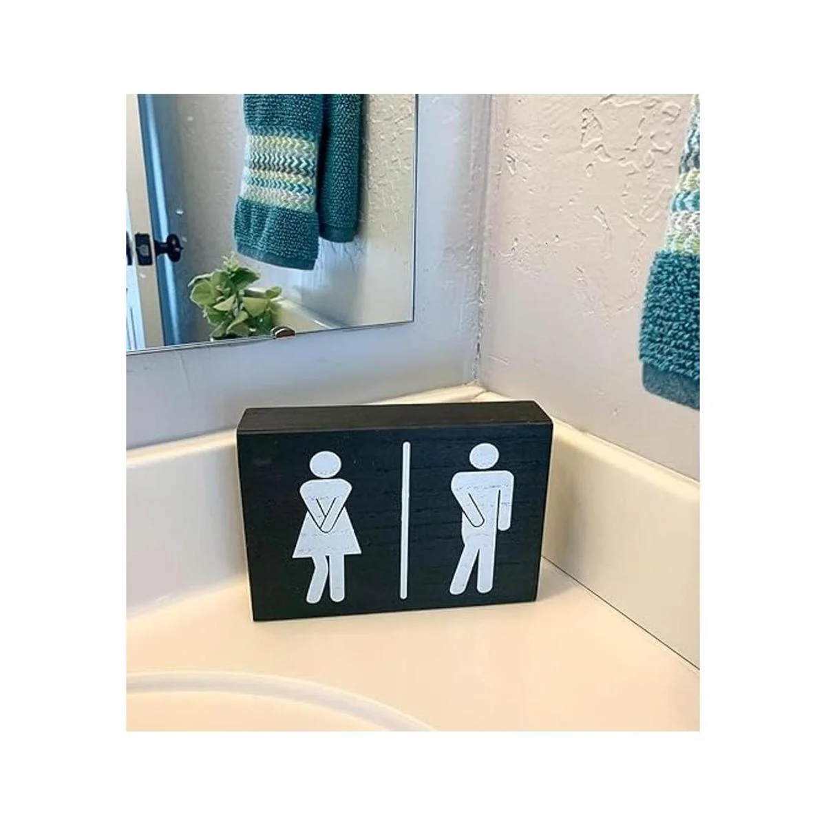Sukha Home Letreros divertidos de baño, bonito letrero unisex para baño, decoración de pared de madera para estante o arte de pared, decoración del hogar y baño