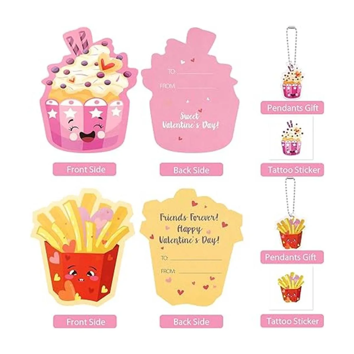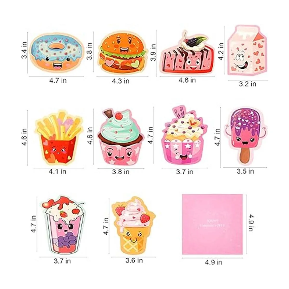 Patrones superbonitos para elegir: nuestras tarjetas cuentan con 10 patrones diferentes como pasteles, donas, helados, hamburguesas, patatas fritas, etc. Cada tarjeta coincide con los regalos relacionados y tatuajes temporales extraíbles, seguro para los niños sin ningún mal olor. Una nota dulce seguramente alegrará el día de alguien y a menudo significa más que caramelos.
