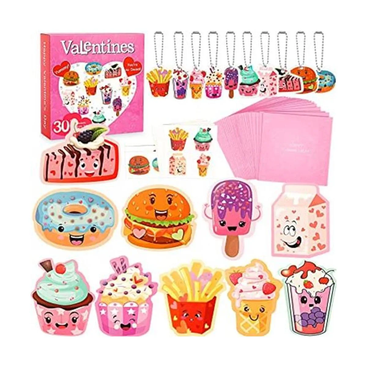 Regalos especiales de San Valentín: este juego de regalo de San Valentín incluye 30 colgantes con deliciosos patrones que se pueden colgar en la mochila escolar o llaveros. Los niños pueden enviar a amigos para mostrar amabilidad y aumentar su habilidad social. Estas tarjetas personalizadas también ofrecen más diversión para niños y niñas en tarjetas de intercambio