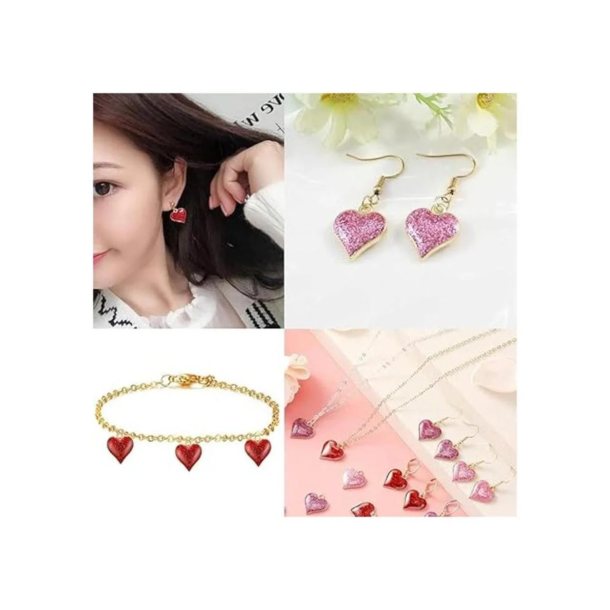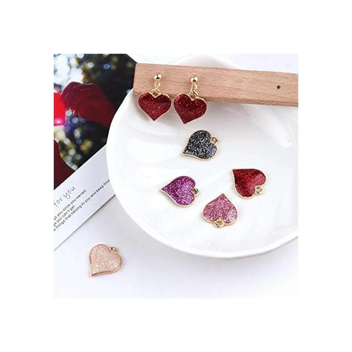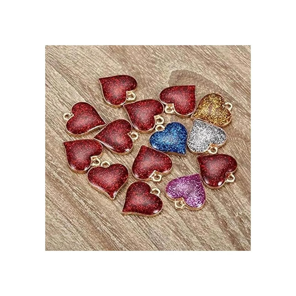 SUKPSY 20 piezas en forma de corazón de aleación esmalte colgante día de San Valentín Glitter DIY Charms con agujero para collar pulsera pendientes artesanía fabricación suministros