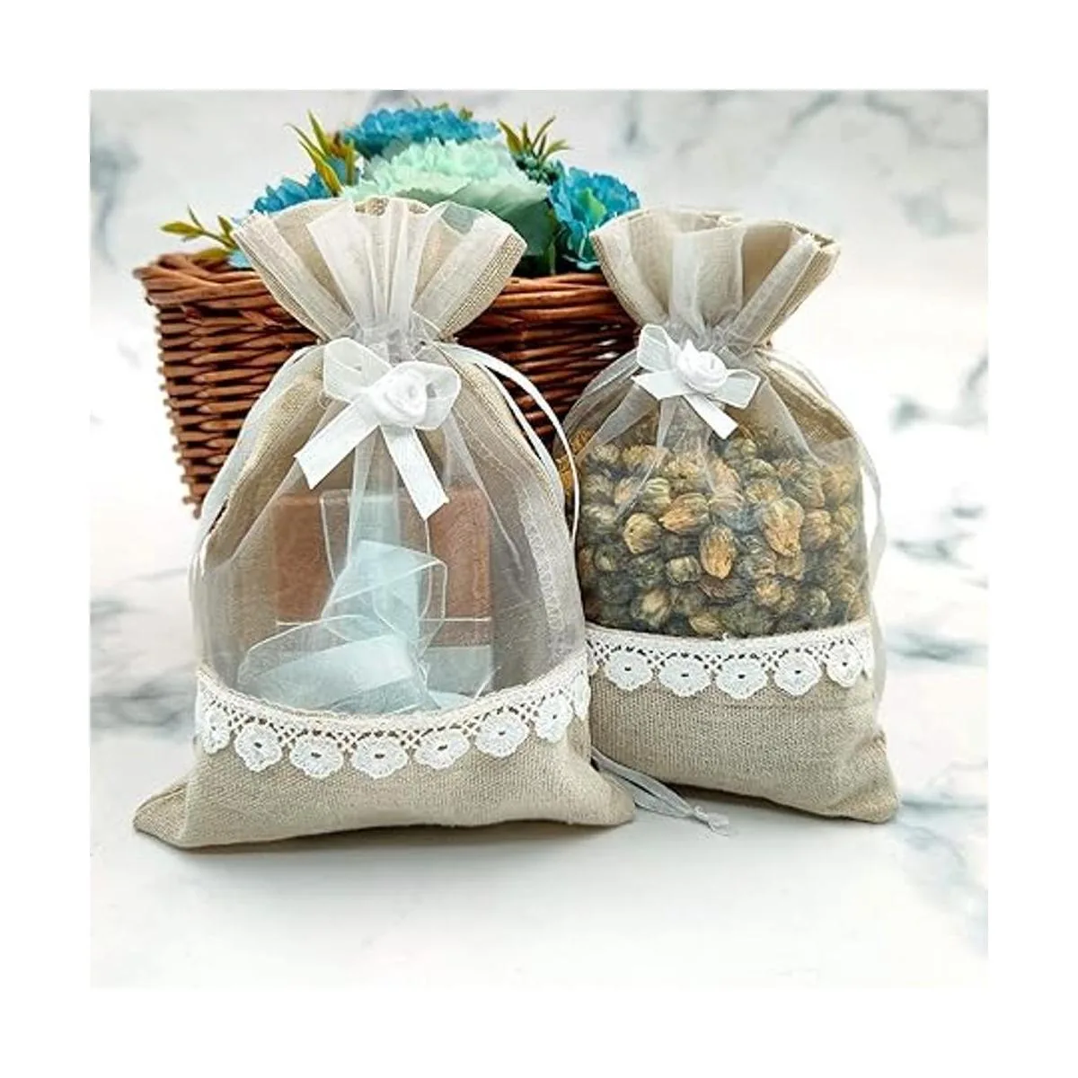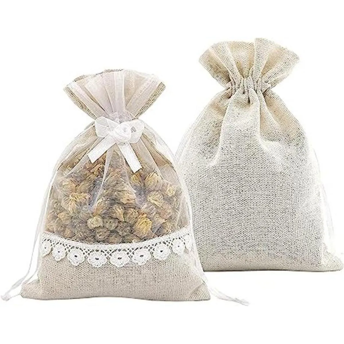 El paquete incluye 20 bolsas de encaje de organza de lino