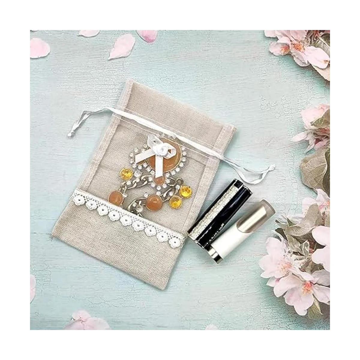 Viene con un cordón para asegurar el contenido de la bolsa, ideal para vacaciones, bodas, piedras, cadenas, regalos, manualidades y joyas