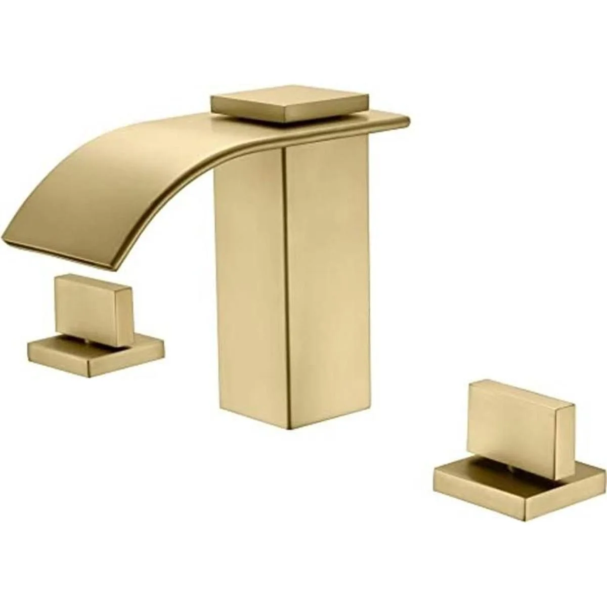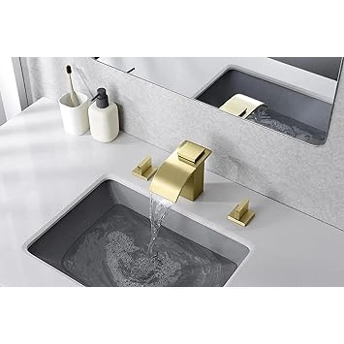 SUMERAIN Grifo de baño de cascada de oro cepillado con 3 agujeros de 8 pulgadas generalizado grifo de lavabo de baño