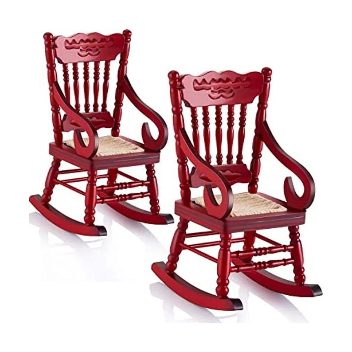 Sumind 2 sillas de madera para casa de muñecas 112 de Navidad, modelo de casa de muñecas, mini sillas mecedoras de madera para casa de muñecas, accesorios para decoración de muebles