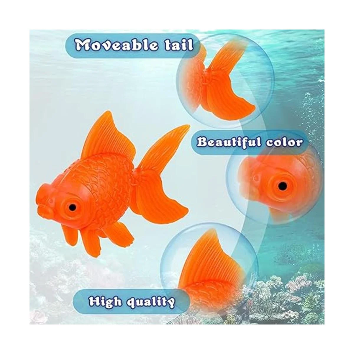 Efecto flotante: diseñado con un diseño de centro de gravedad, los peces artificiales flotantes pueden flotar en agua fija sin rodar o invertir; bajo el impacto de la bomba de agua, bomba de ondas, bomba de oxígeno y otras fuerzas externas, estos peces dorados de plástico nadarán en el agua