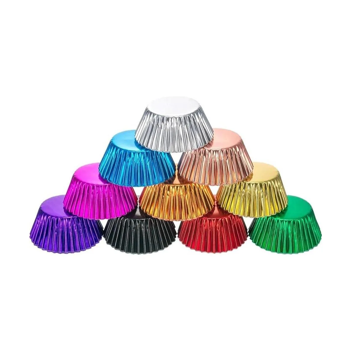 Sumind Forros de papel de aluminio de 10 colores para cupcakes, tazas de papel estándar para hornear para magdalenas 200 piezas
