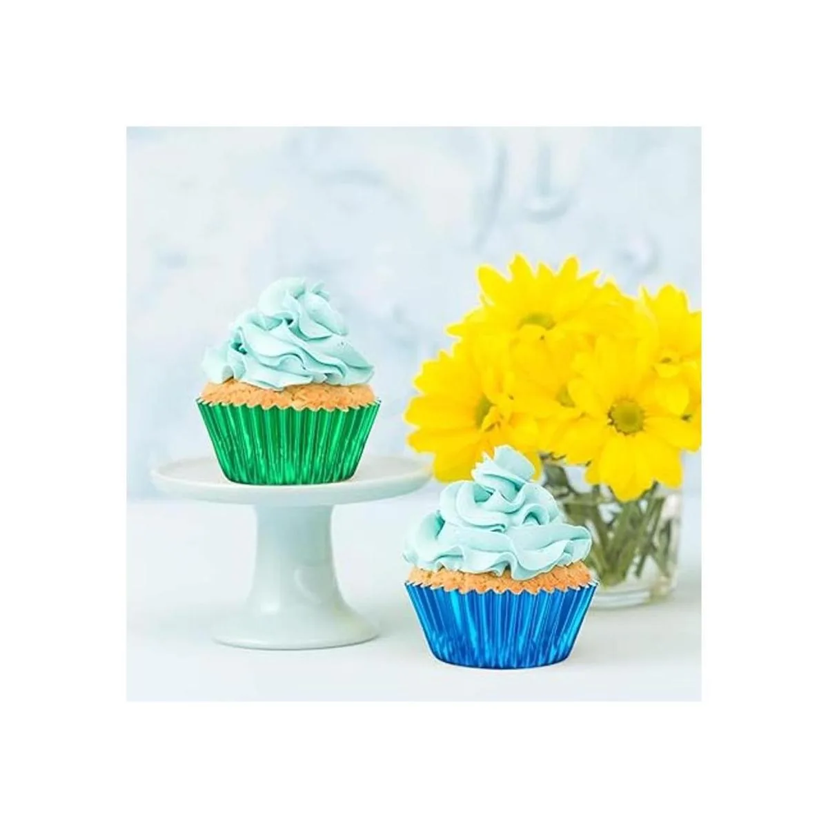 Material: los mini forros de aluminio para cupcakes están hechos de papel de grado alimenticio, seguro e inodoro; forros resistentes a la grasa en el interior, resistentes a altas temperaturas