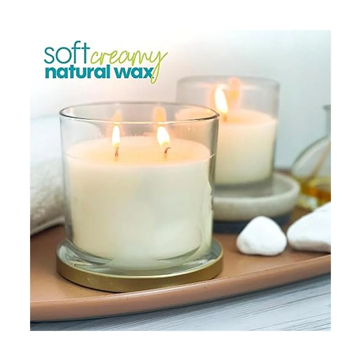 Rápido y fácil: el paquete contiene cera de mezcla de soja de alta calidad y 50 mechas alemanas preenceradas. Las mechas funcionarán muy bien con contenedores de 6,35 a 3.0 in de diámetro. Utiliza más de una mecha para tarros más grandes, vasos. La cera se derrite muy bien y está hecha para una alta carga de fragancia. Añade tinte o tintes para más colores, funciona con mechas de madera o mechas de madera.