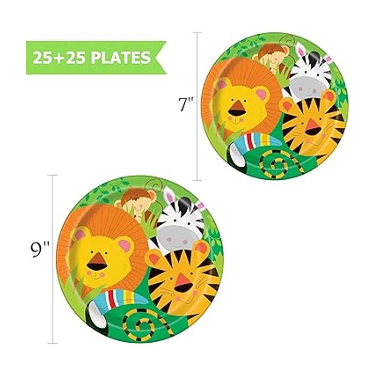 Platos de animales de safari de la selva: 25 platos de papel para fiestas de animales de la selva tamaño 9.0 in y 25 platos de papel para fiestas de cumpleaños de animales tamaño 7.0 in
