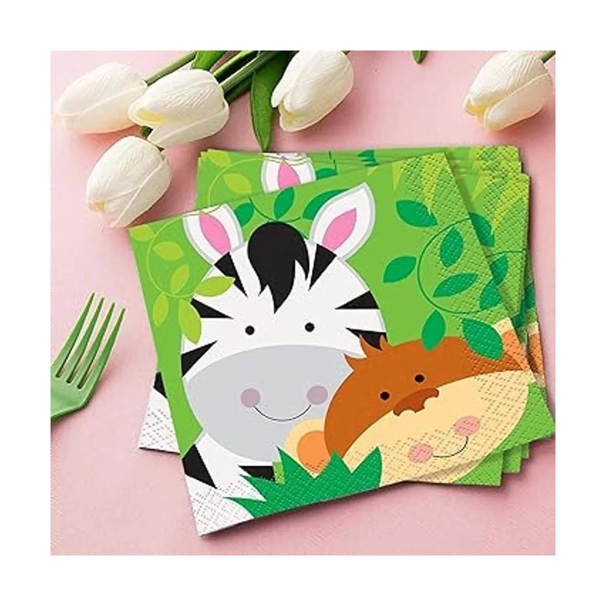 Servilletas de animales de safari de la selva: 25 servilletas de papel para fiestas de animales de la selva tamaño 13.0 x 13.0 in