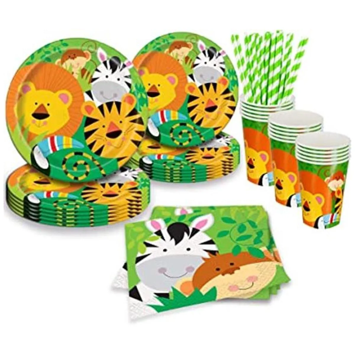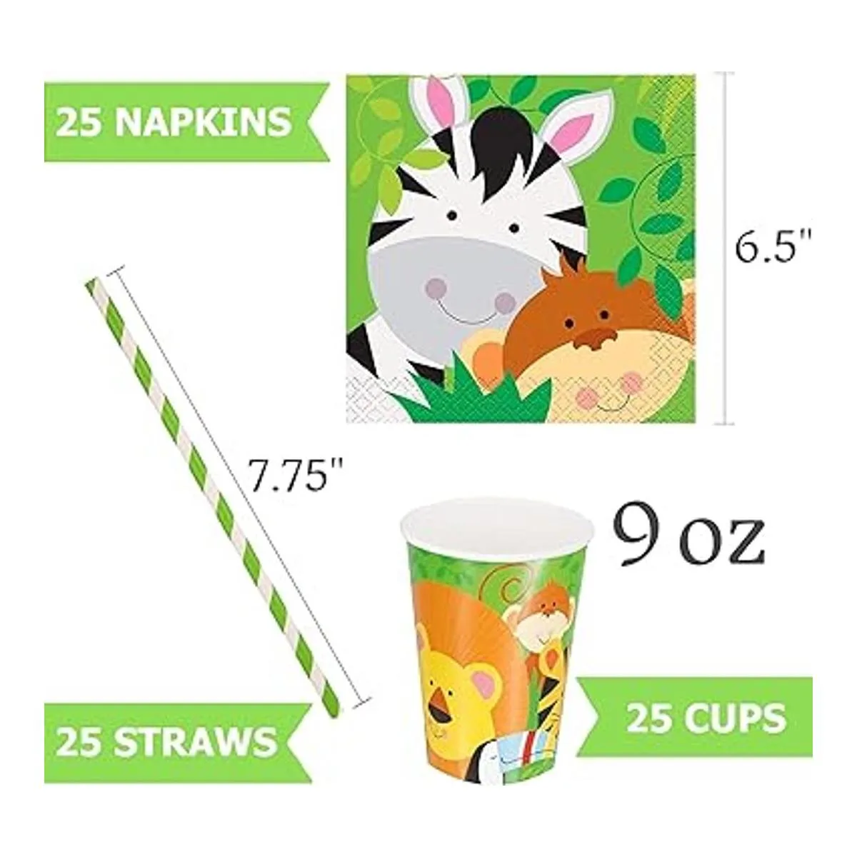 Suministros para fiestas de animales de la selva platos de animales, tazas, servilletas, pajitas 25 porciones