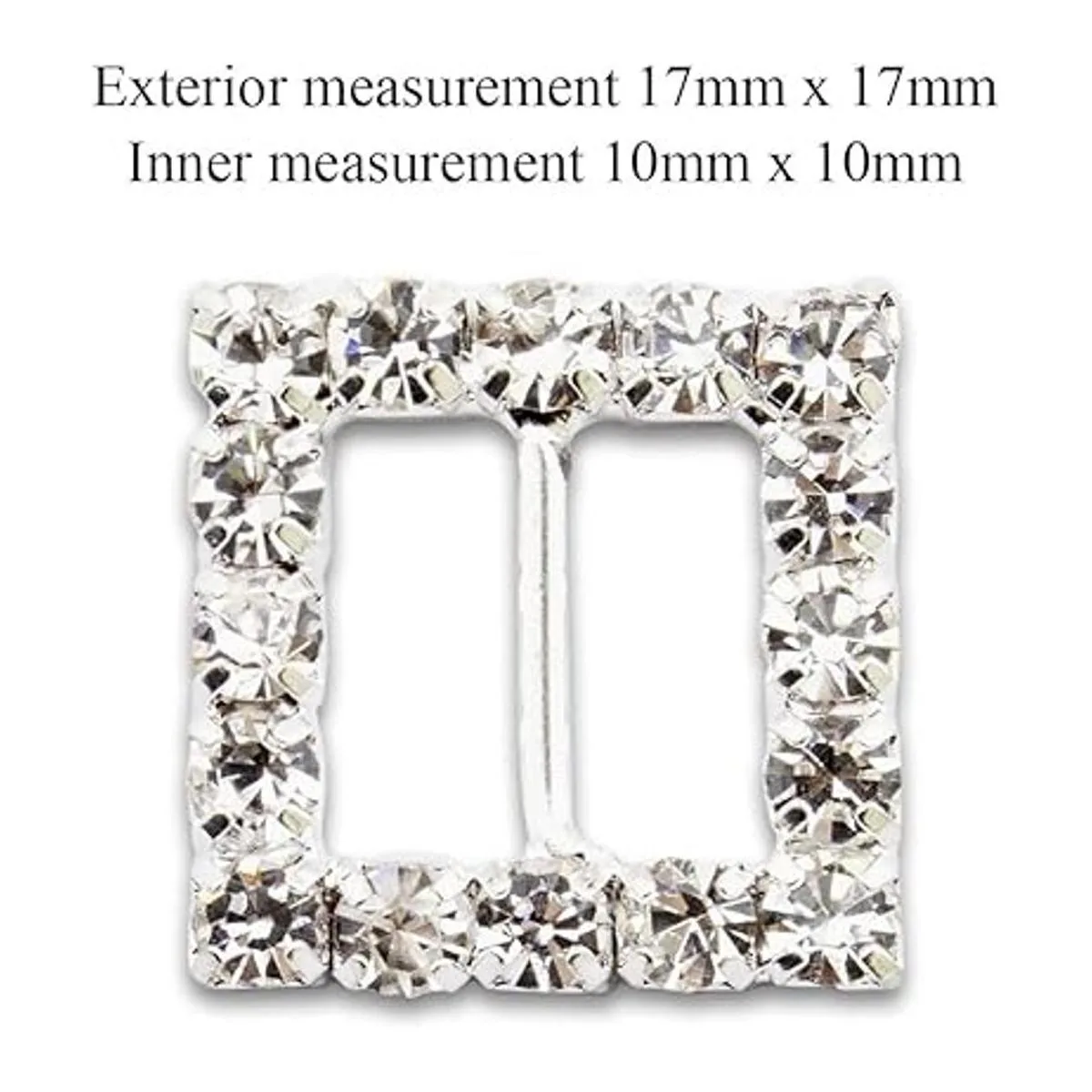25 hebillas cuadradas de diamantes de imitación en el paquete.