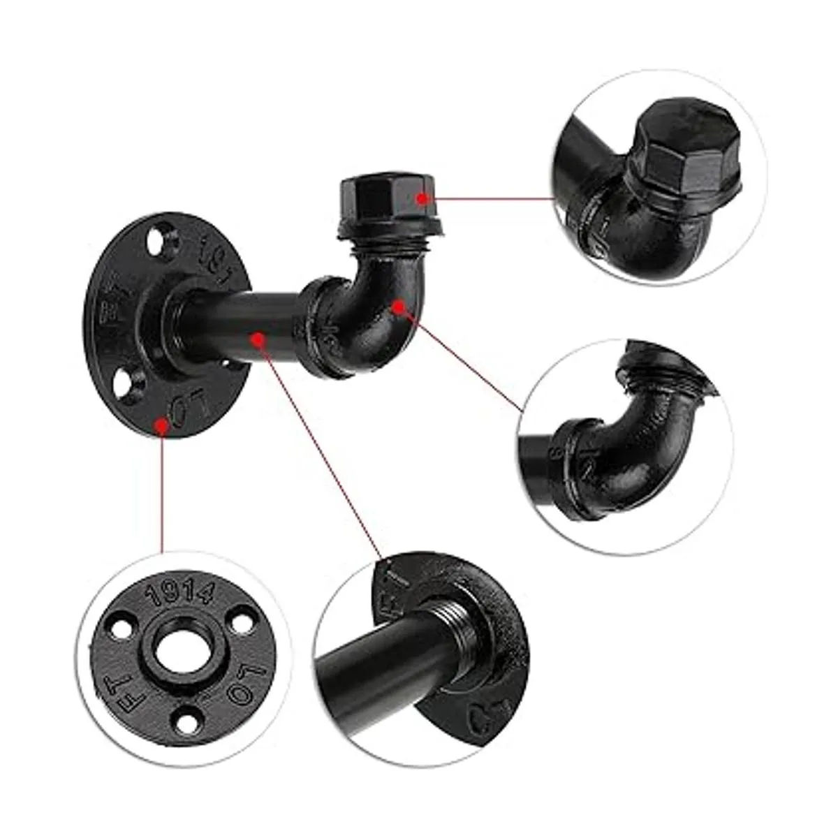 Auténtico y sólido: el soporte de tubería de estilo industrial está hecho de hierro, acabado negro galvanizado, es un bonito diseño resistente con construcción de metal completo. Este artículo es fácil de montar e instalar, y viene con todos los tornillos y anclajes para montar en paredes de hormigón/azulejos u otro tipo de pared. Nota: Asegúrate de limpiar los hilos de aceite antes de colgar cualquier cosa en ellos, una vez limpiados la suciedad de la fabricación, estos se juntaron muy fácilmente y se ven geniales.