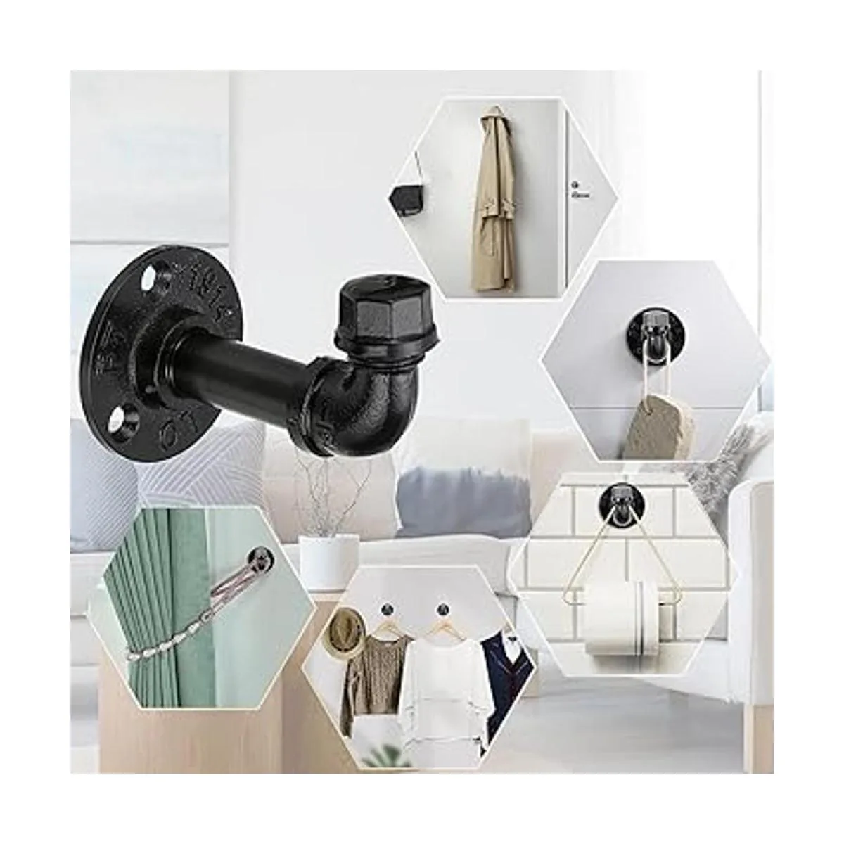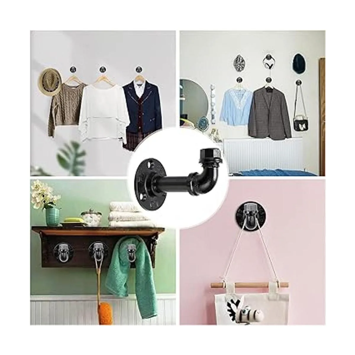 Múltiples funciones: no es solo un gancho para colgar batas, abrigos, sombreros, bolsas y otras prendas exteriores, sino que también se puede utilizar como soporte de cortina; no solo se puede utilizar en todas partes de tu hogar, como baño, dormitorio, cocina, sala de estar, balcón, entrada, sino que también se puede utilizar en exteriores. El industrial rústico se ve bien con casi cualquier tema de habitación.