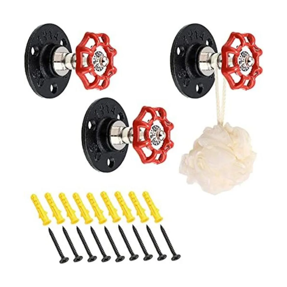 Sumnacon 3 ganchos industriales para abrigos, soporte de toallas, para sombrero, rústico, resistente, para colgar en la pared, con accesorios para el hogar, oficina, acabado negro galvanizado
