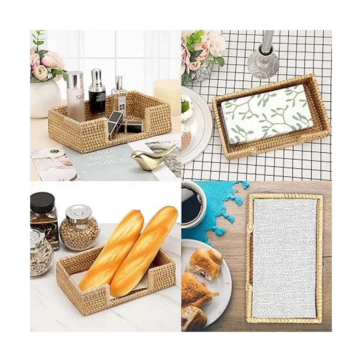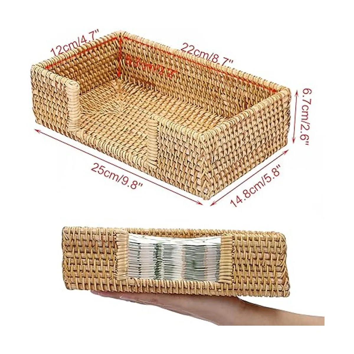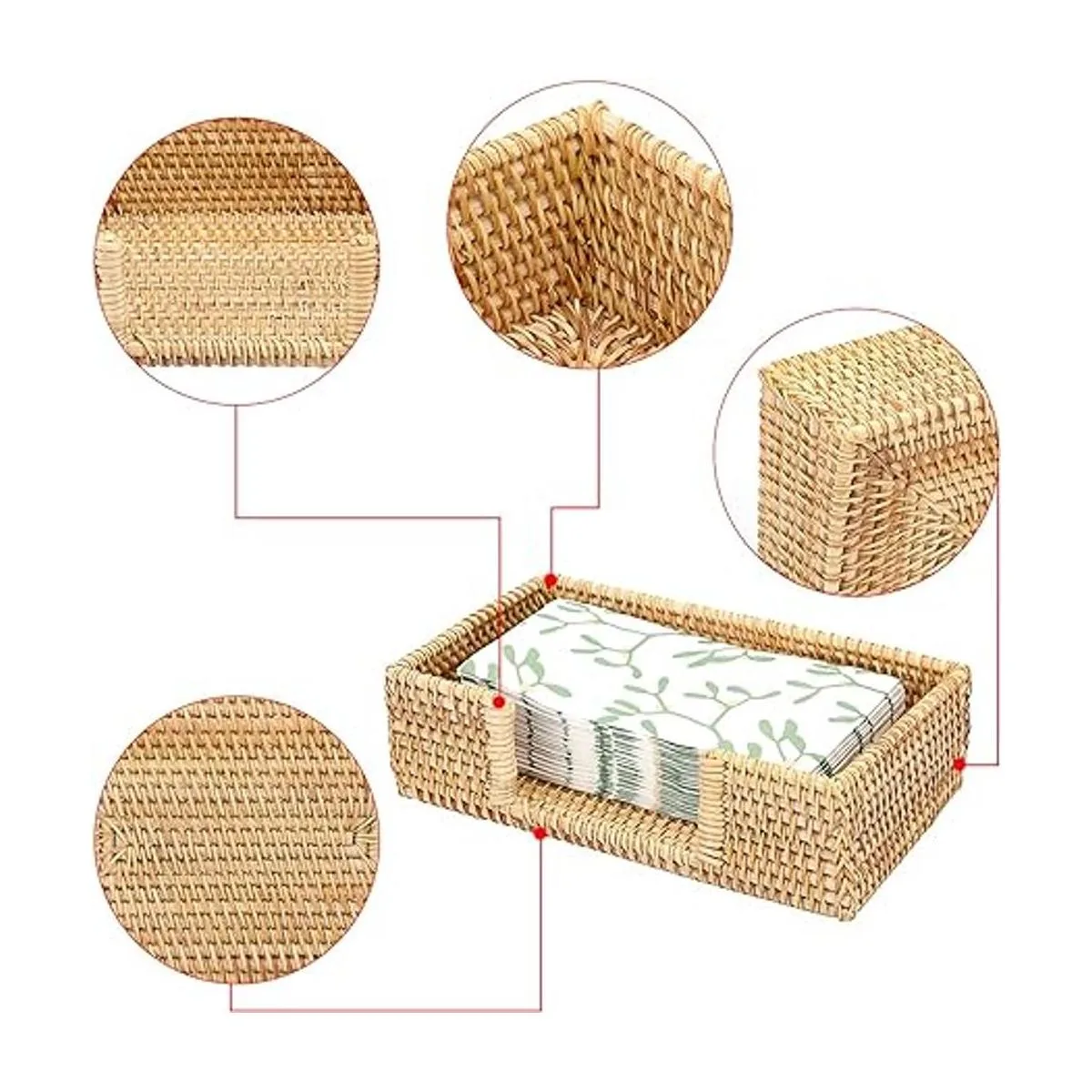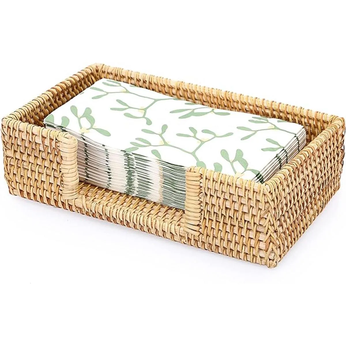 Sumnacon Servilletero rectangular de ratán para mesa de comedor, cocina, toallero de mimbre para tocador de baño, cesta decorativa para almacenamiento de toallas de mano, color marrón miel
