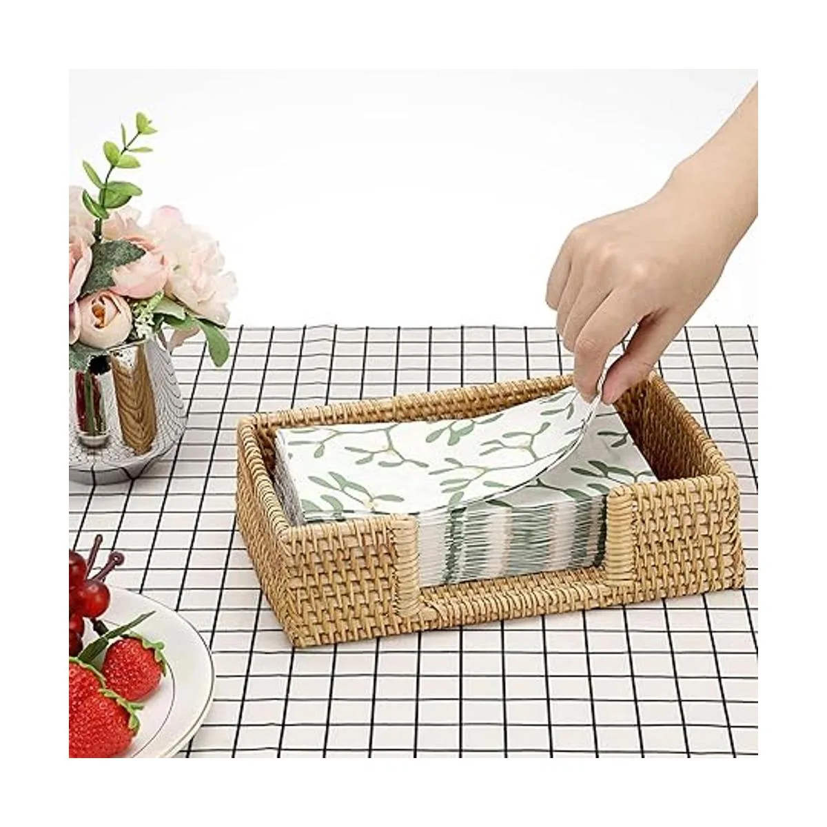 Material de alta calidad: el servilletero está hecho de ratán y hecho a mano, el material natural y respetuoso con el medio ambiente es especialmente adecuado para familias con bebés y niños.