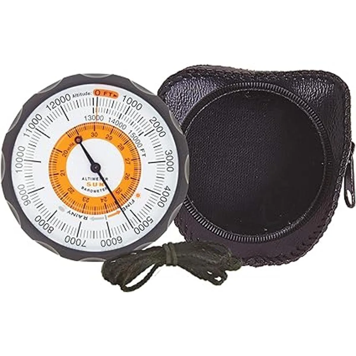 Sun Company Altimeter 202 Altímetro y barómetro sin batería Indicador de tendencia meteorológica con funda de piel suave Lee altitud de 0 a 15.000 pies