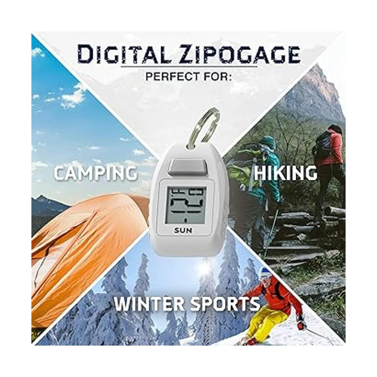 Sun Company Digital Zipogage Termómetro digital compacto con cremallera para esquí, snowboard, camping en clima frío, raquetas de nieve o cualquier actividad al aire libre