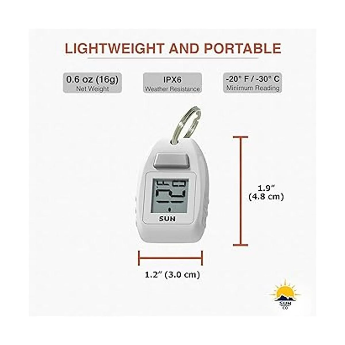 Ultra compacto: mide solo 1.9 in de largo y 1.2 in de ancho, el Zipogage digital es el termómetro digital personal más compacto y ligero disponible. Extremadamente útil en cualquier entorno interior o exterior y se engancha directamente a tu llavero o cremallera para cualquier chaqueta, mochila, parka o bolso.