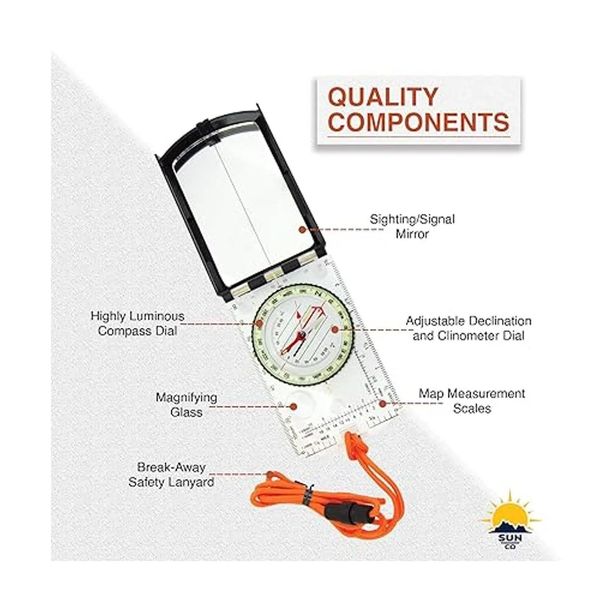 Sun Company ProSight Brújula de mapa con declinación ajustable Brújula de orientación manual para senderismo, mochila y navegación de supervivencia