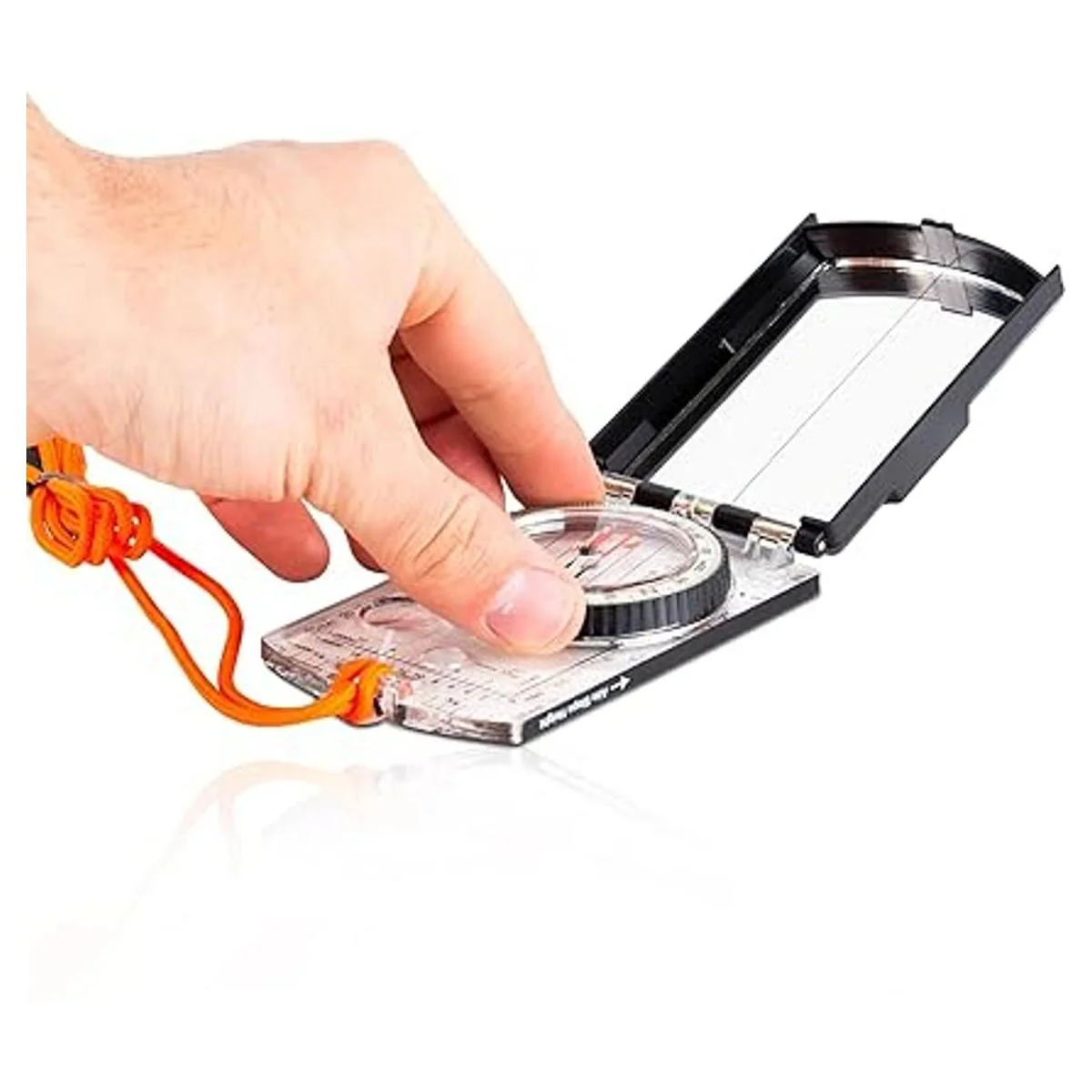 Espejo de visión y cubierta protectora: la cubierta protectora mantiene la brújula a salvo de daños. Abre la cubierta para revelar un espejo de observación de tamaño completo.