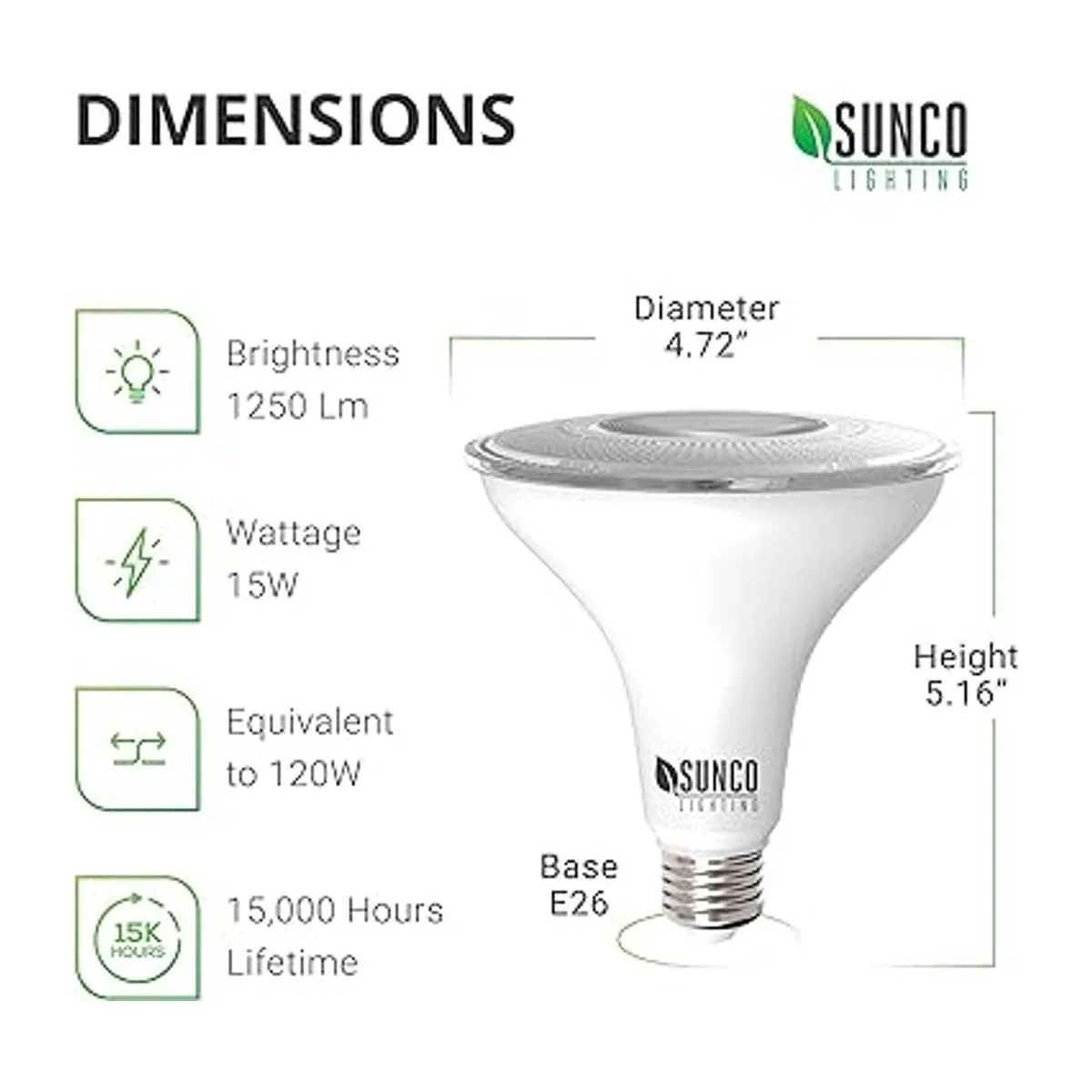 Sunco Lighting Luz LED de inundación para exteriores, bombilla LED PAR38 impermeable, atardecer al amanecer, equivalente a 120 W 15 W, exterior, calificación húmeda, luz diurna de 5000 K 1250 LM, base E26, paquete de 4 UL