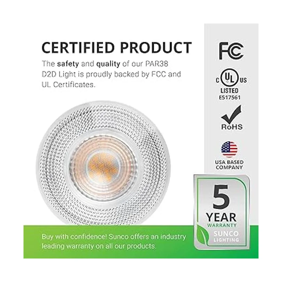 Certificado UL: mantenemos los más altos estándares probando cada producto para un rendimiento y seguridad óptimos. Nuestras bombillas LED PAR38 con sensor de atardecer a amanecer ofrecen una vida útil más larga que las bombillas tradicionales halógenas, incandescentes, fluorescentes y costos reducidos de recarga. Ahorre energía hasta un 85 cuando cambie a LED.