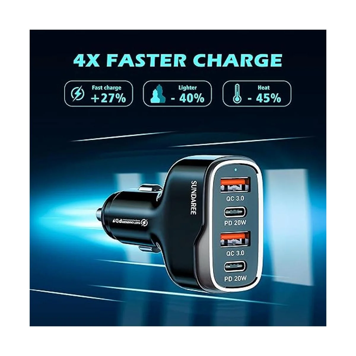 SUNDAREE Cargador de coche USB C de 4 puertos de 40 W de carga rápida para encendedor de cigarrillos, cargador dual QC 3.0 18 W y PD 20 W para teléfono Android compatible con iPhone 13, 12, 11 Pro Max X X, Samsung S2120