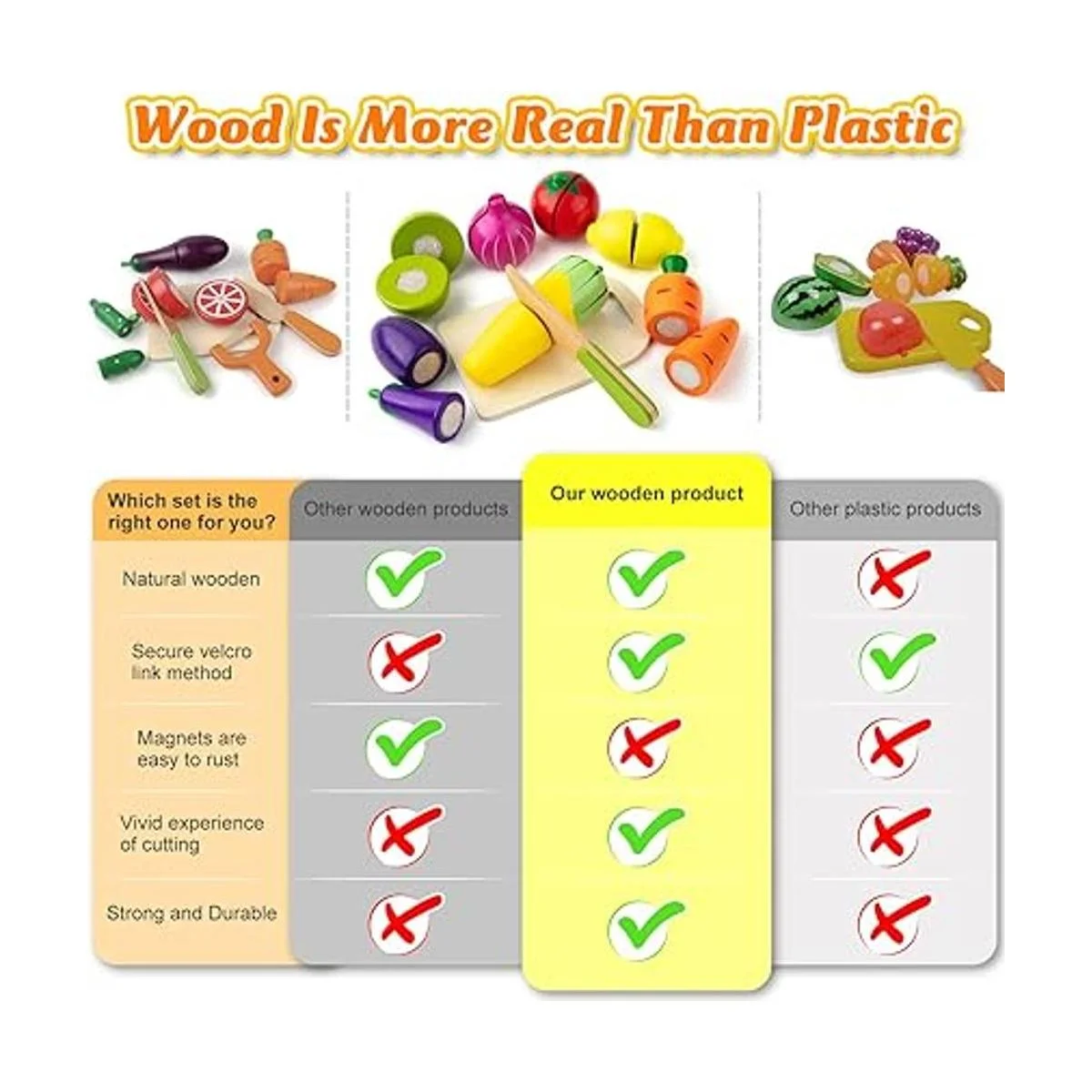Regalo perfecto para niños: los exquisitos juguetes de madera son muy adecuados para el juego de cocina para niños pequeños de 3 años. La comida de madera se extiende y se pega junto con hebillas de nailon, haciendo un sonido crujiente cuando los niños cortan los juguetes de alimentos, juego de cocina para niños pequeños que puede traer a los niños una sensación realista, el juego de cocina para niños pequeños es el mejor regalo para preescolares y niños pequeños para cumpleaños, si no estás satisfecho, por favor ponte en contacto con nosotros.