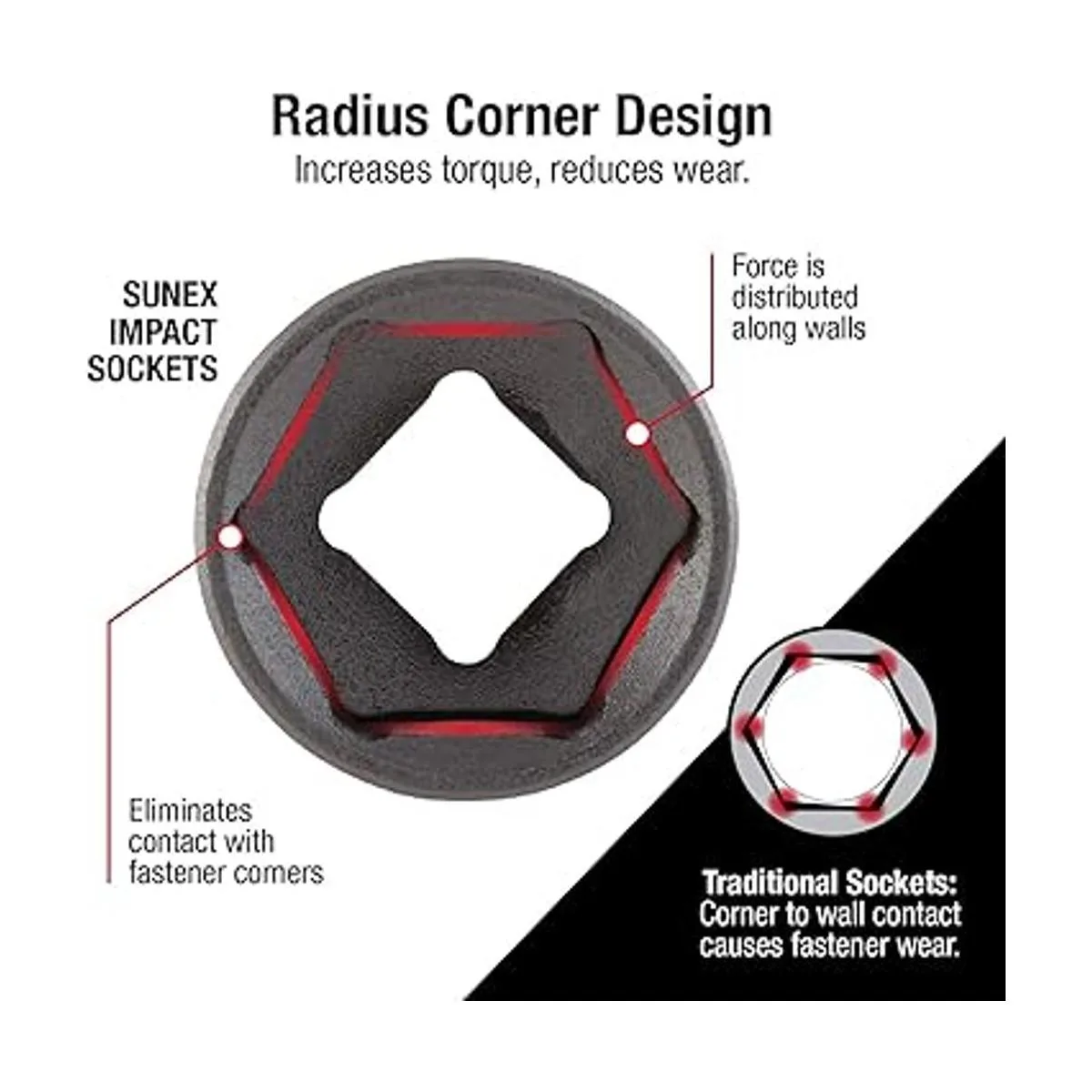 Todas las herramientas de sunex vaso de impacto son forjado de aleación de acero CrMo y tratado con calor a especificaciones precisas para una calidad inigualable y durabilidad