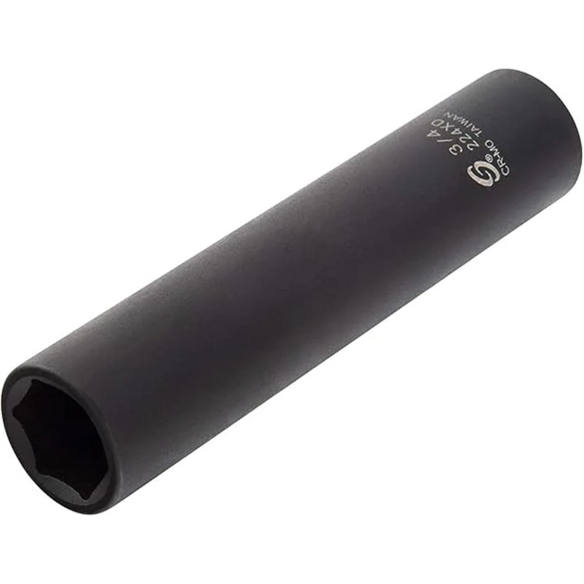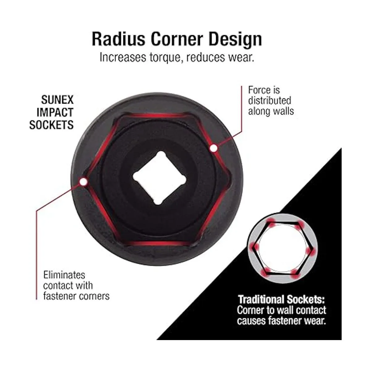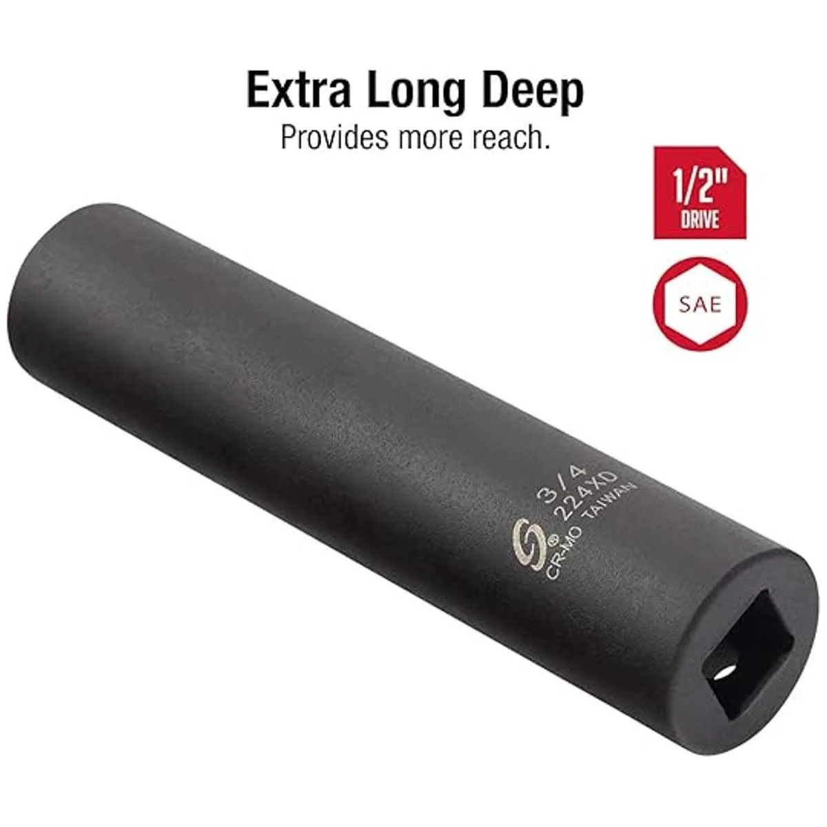 Sunex 224XD, unidad de 12 pulgada, profundidad extra larga de 34 pulgadas, toma de impacto, acero de aleación CrMo, diseño de esquina de radio, marcas de doble tamaño