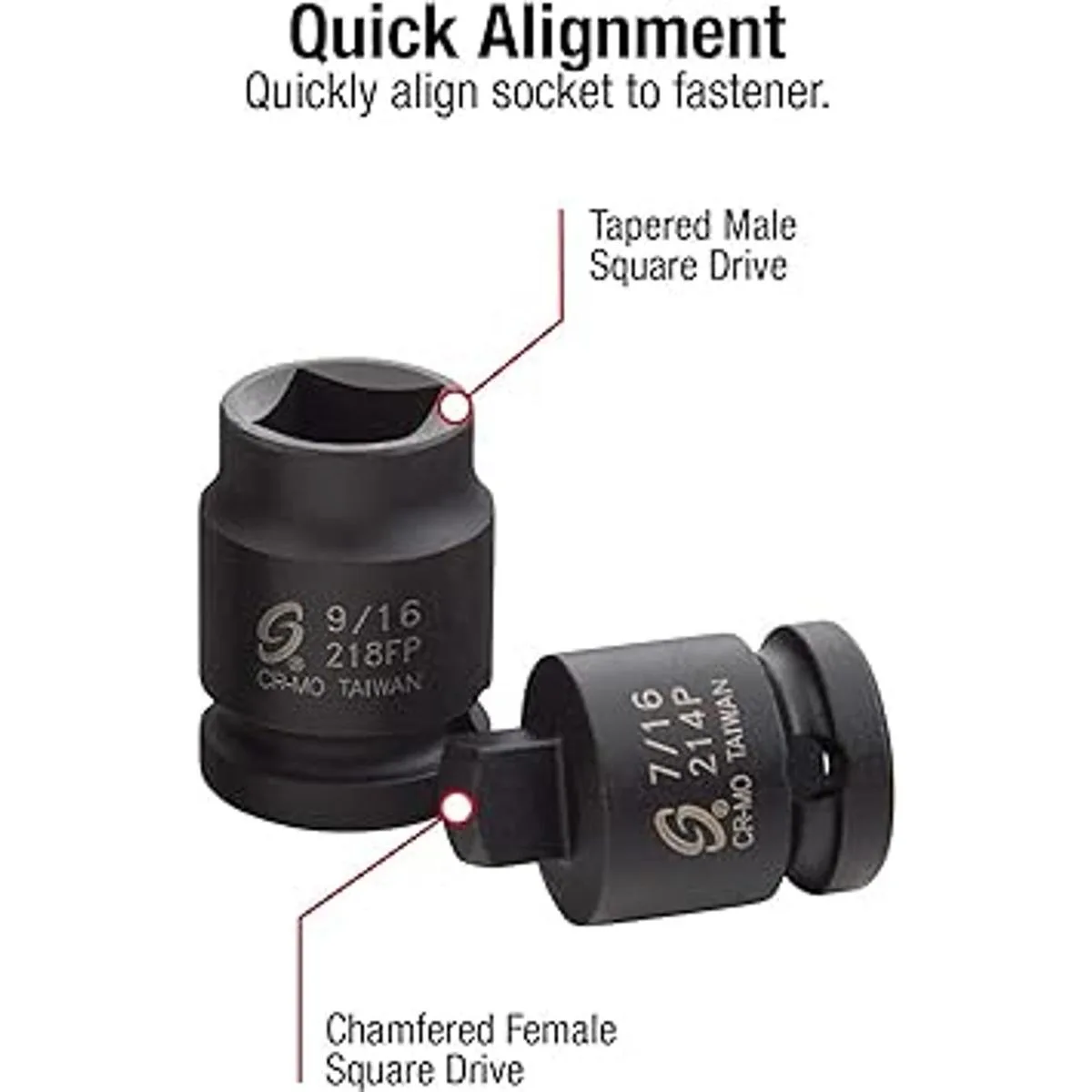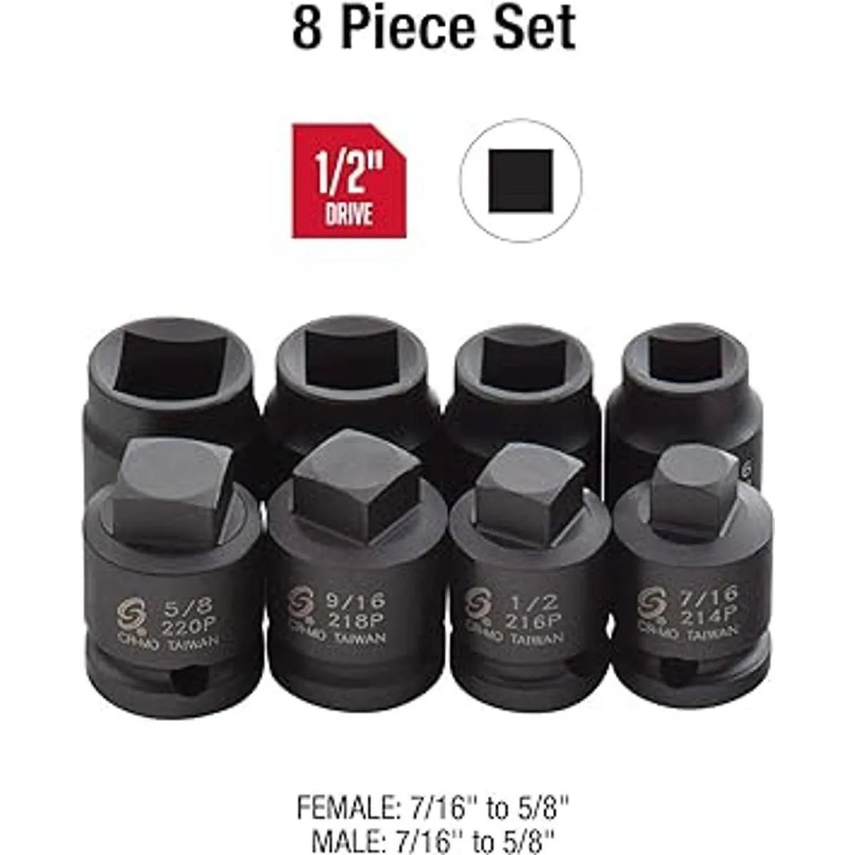 Sunex 2841 Juego de enchufe de tubo de transmisión de 12 pulgada, juego machohembra, CrMo, 716 pulgadas, macho de 58 pulgadas, 716 pulgadas, hembra de 58 pulgadas, 8 piezas