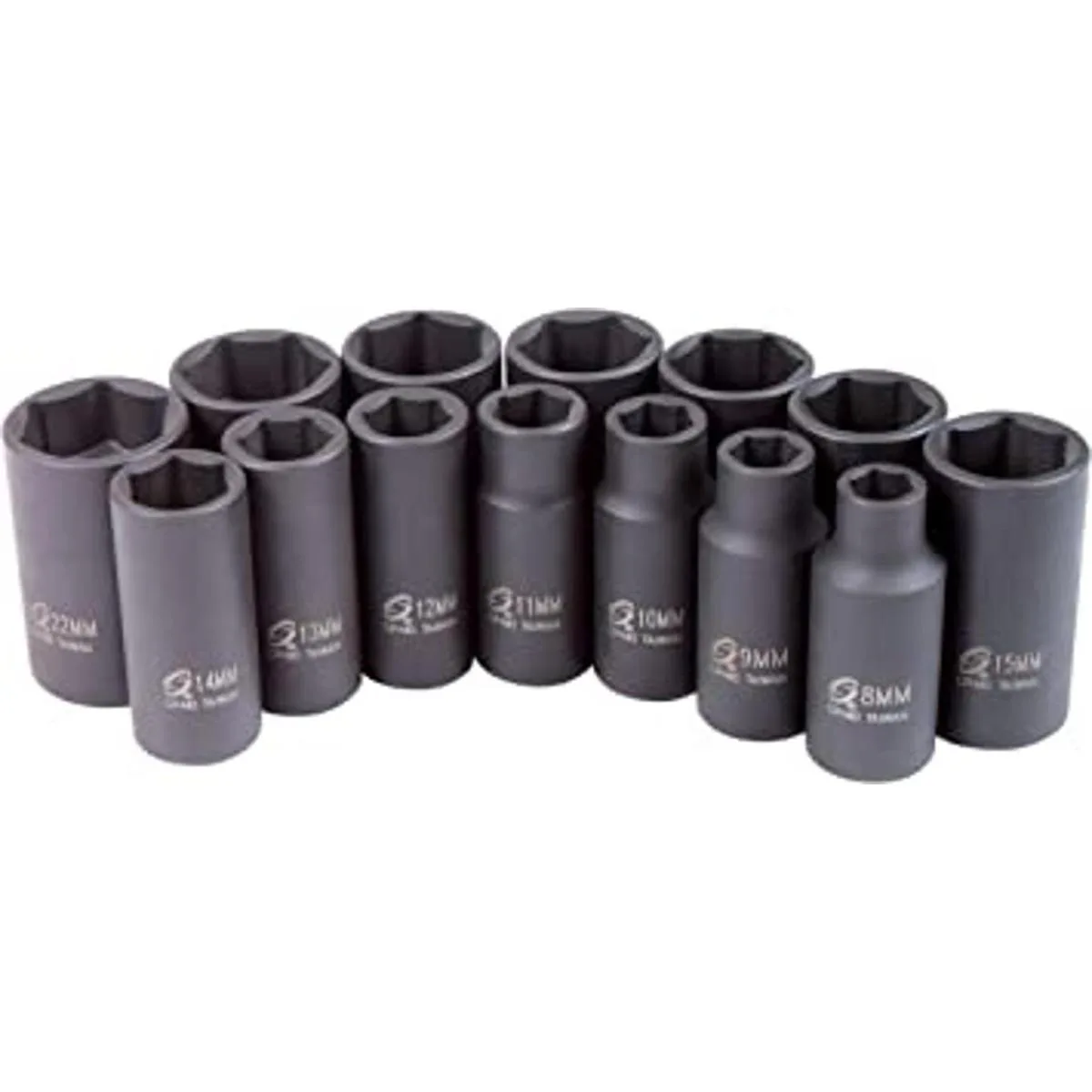 Sunex 3328 Sunex 3328 Juego de llaves de impacto métricas de profundidad media de 38 pulgadas, 14 piezas