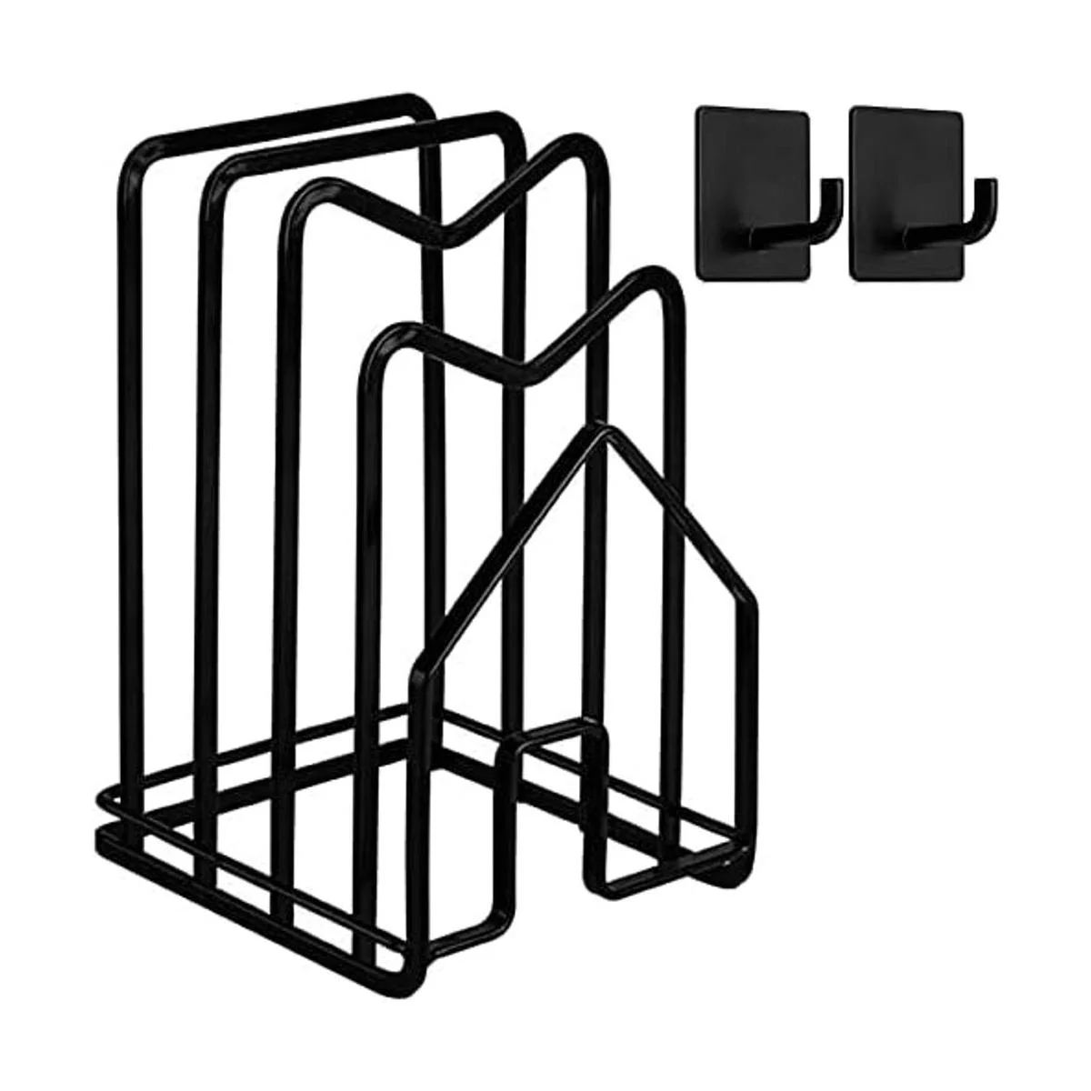 SUNFCON Soporte para tabla de cortar, 2 ganchos adhesivos de acero inoxidable 304, organizador de tabla de cortar, bandeja fina para utensilios para hornear, soporte de exhibición seco, gabinete de cocina, oficina, color negro