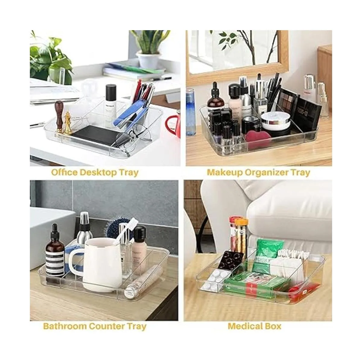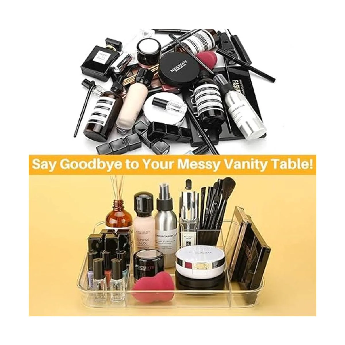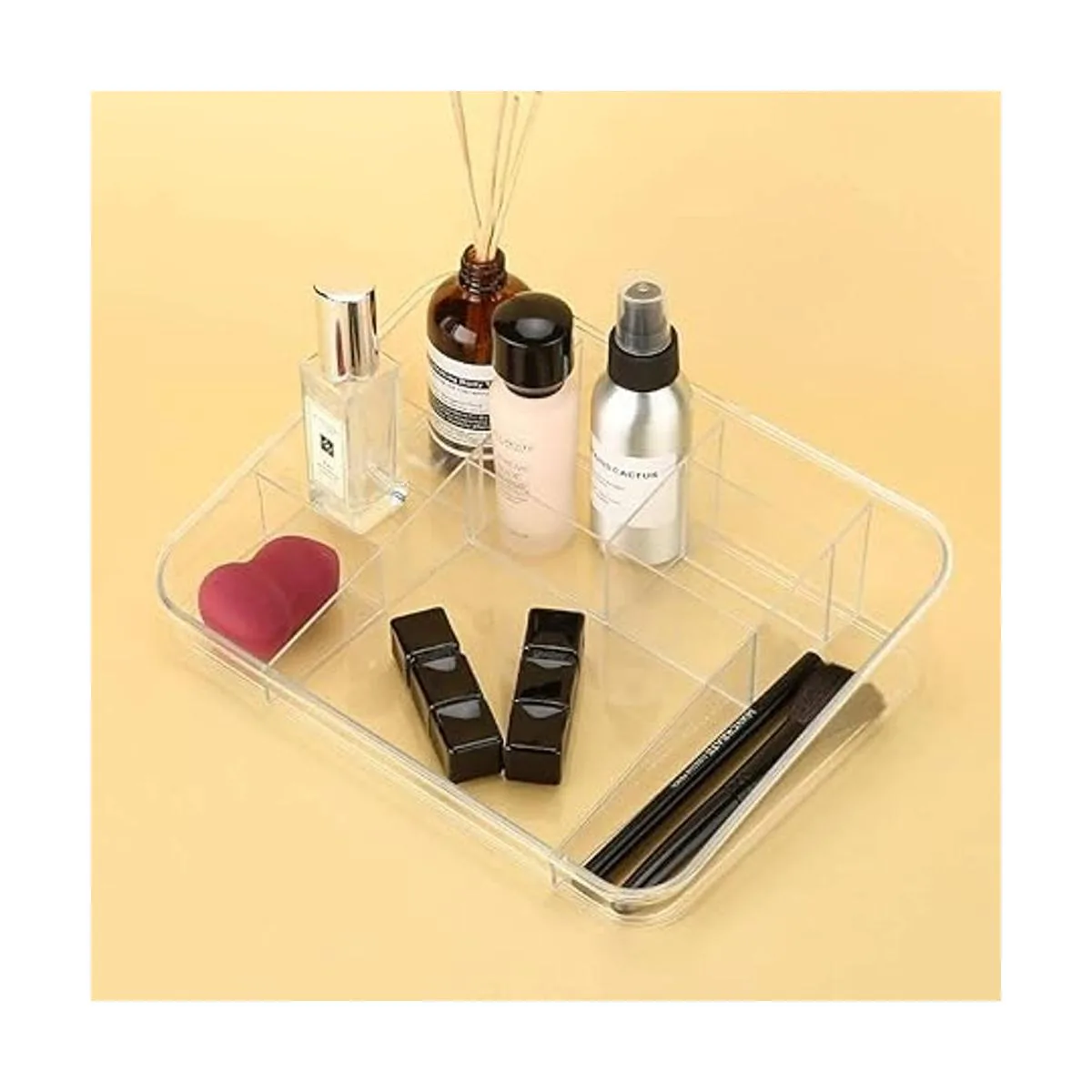 SUNFICON Bandeja organizadora de maquillaje, vitrina de cosméticos, soporte de almacenamiento de artículos de papelería de oficina, caja de maquillaje para cajones de baño, tocadores de escritorio de oficina, acrílico transparente lavable