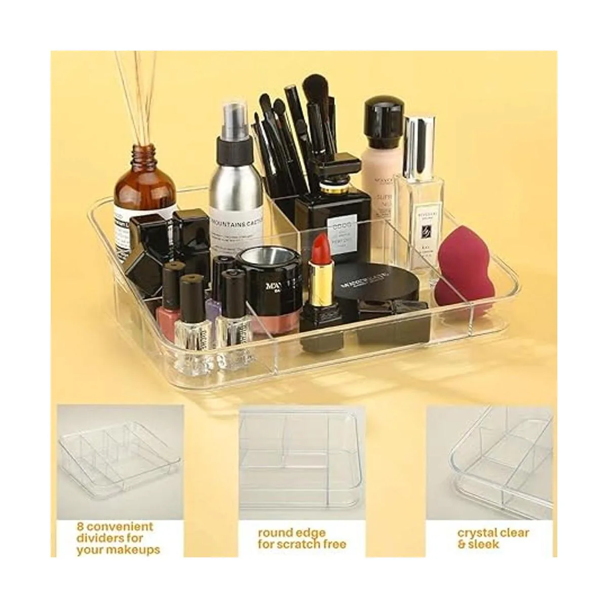 Mantente organizado: con 8 compartimentos diferentes que proporcionan un montón de espacio de almacenamiento. Se puede utilizar solo o con otros sistemas de cajones organizadores grandes. Mantiene tus artículos en tu encimera de baño, tocador, tocador, mesita de noche o escritorio. Personaliza la bandeja de almacenamiento para adaptarse a tus necesidades.