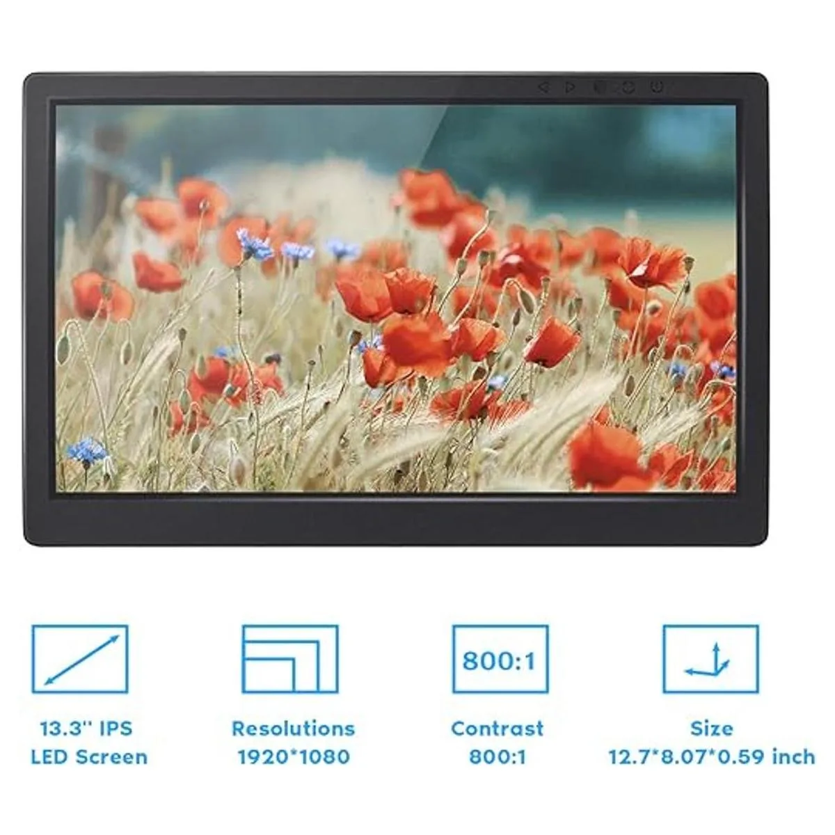 Pantalla Full HD Raspberry Pi de 13.3 pulgadas con resolución de 1920 x 1080. Duradero para uso a largo plazo. El funcionamiento de las teclas es compatible en la pantalla, con un amplio ángulo de visión, tiempo de respuesta rápido y representación precisa del color.