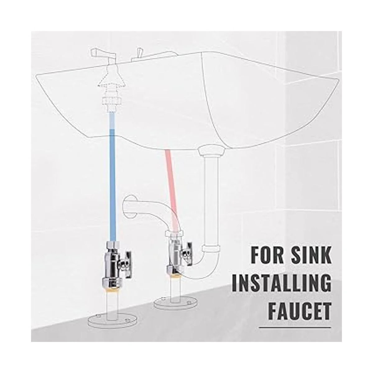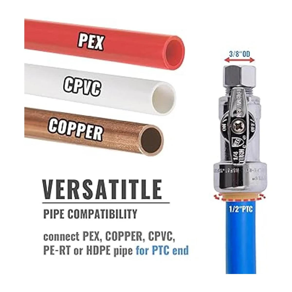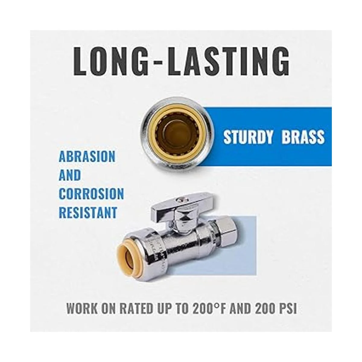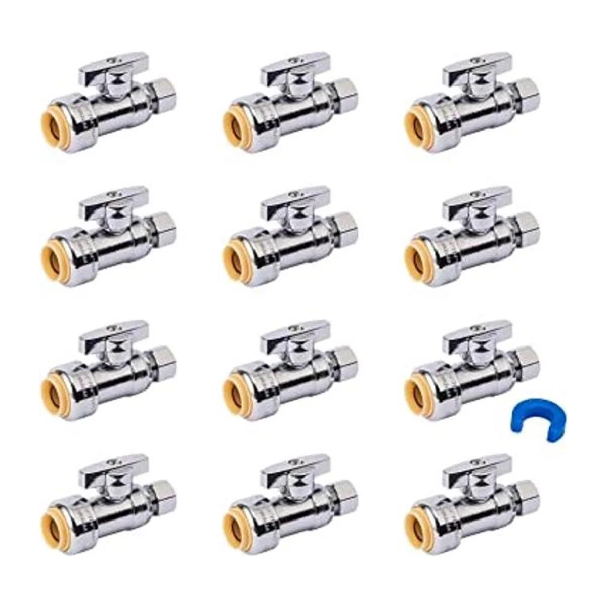 SUNGATOR Apagado recto, paquete de 12 válvulas de tope de agua de ajuste a presión de 12 pulgadas de PVC x 38 pulgadas de compresión con clip de desconexión, empuje para conectar, PEX, cobre, CPVC, PERT, 14 de encendidoapagado, latón sin plomo