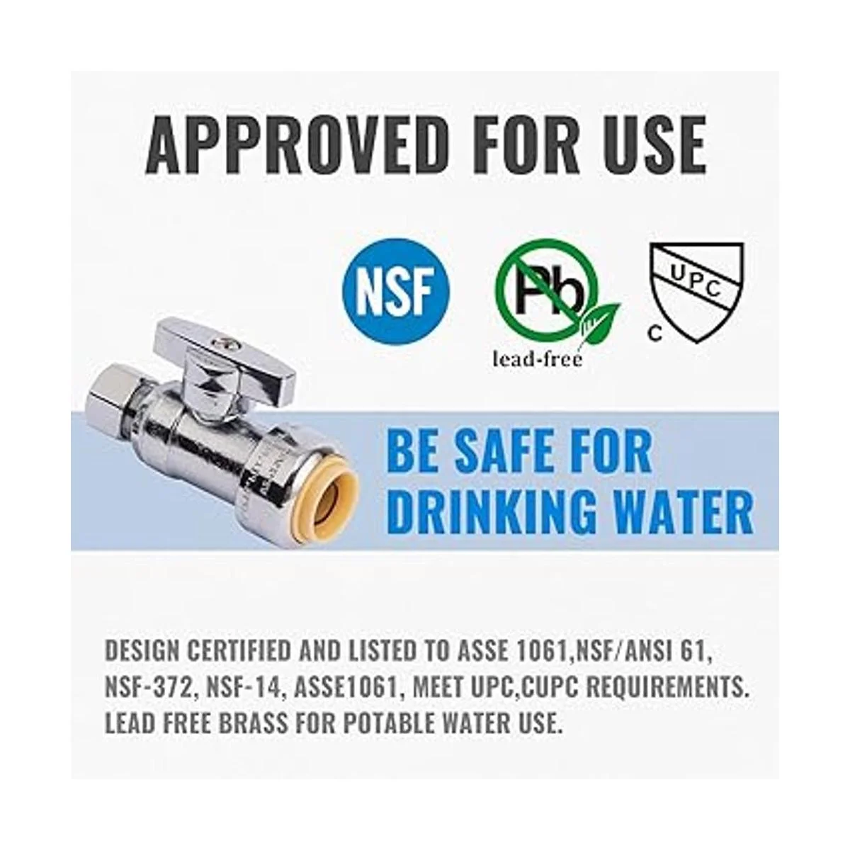 Profesional y seguro: certificado y compatible con CUPC, ANSI/NSF61, NSF372, NSF14, ASSE1061. Los accesorios de ajuste a presión SUNGATOR pueden soportar hasta 200 PSI y 200 F.