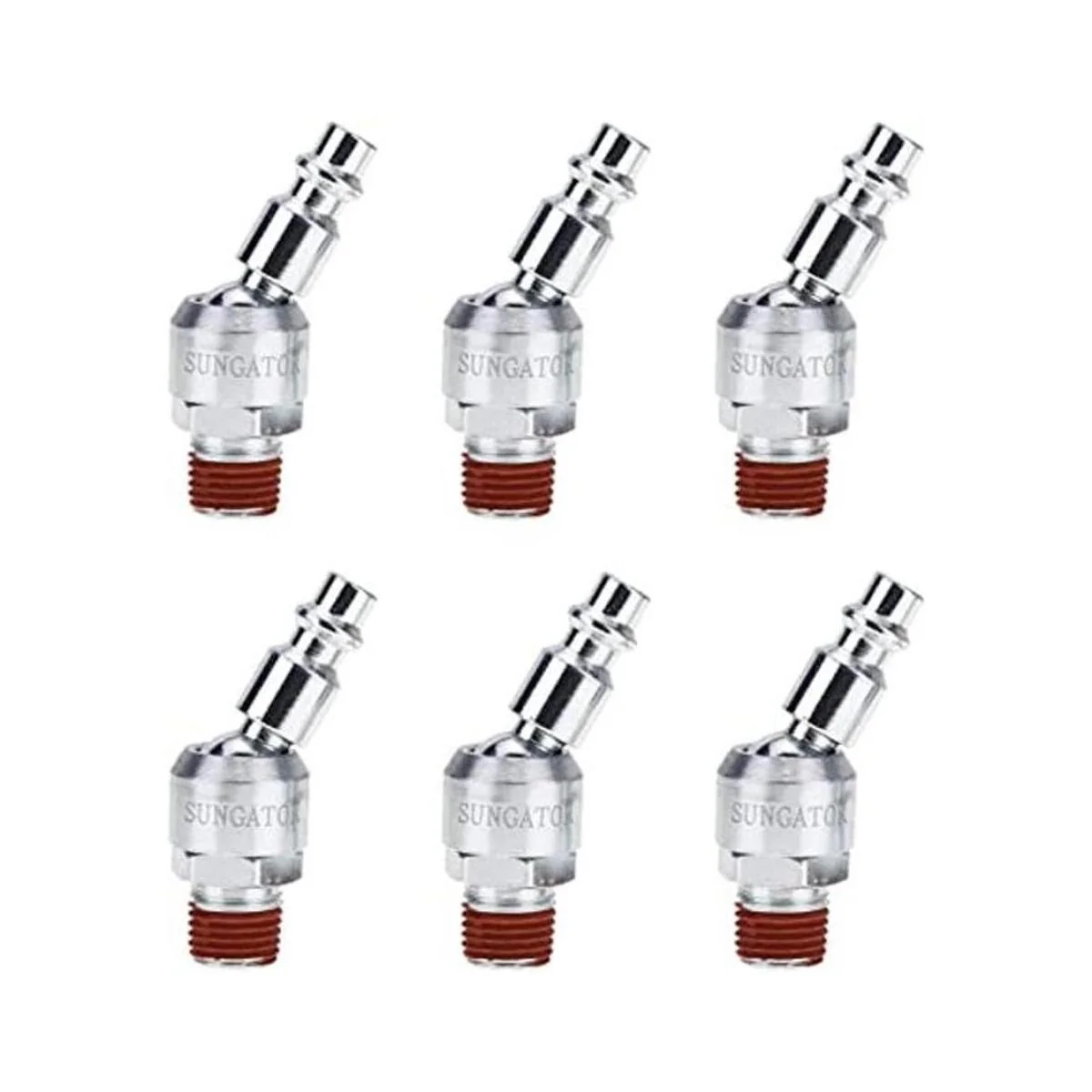 SUNGATOR Enchufe de aire giratorio de 14 pulgadas, paquete de 6, acoplador y enchufe industrial giratorio, rosca macho NPT de 14 pulgadas, accesorios de manguera de aire