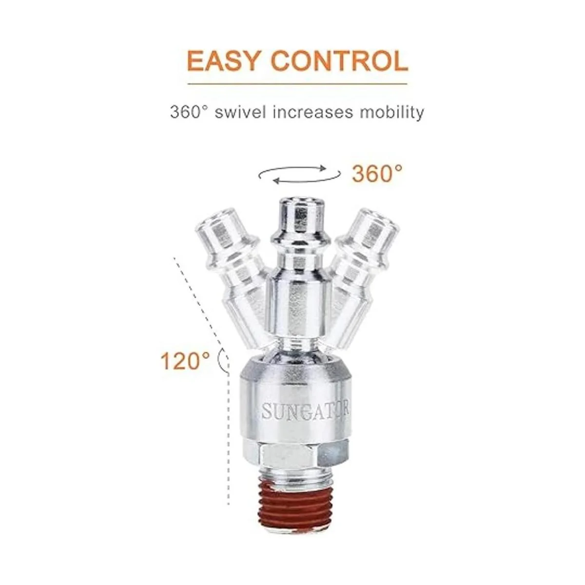 Fácil de control : diseño especial de cuerpo giratorio, evita que la manguera se doble y aumenta la movilidad, ideal para herramientas de aire para reducir la tensión en la muñeca y la manguera de aire.