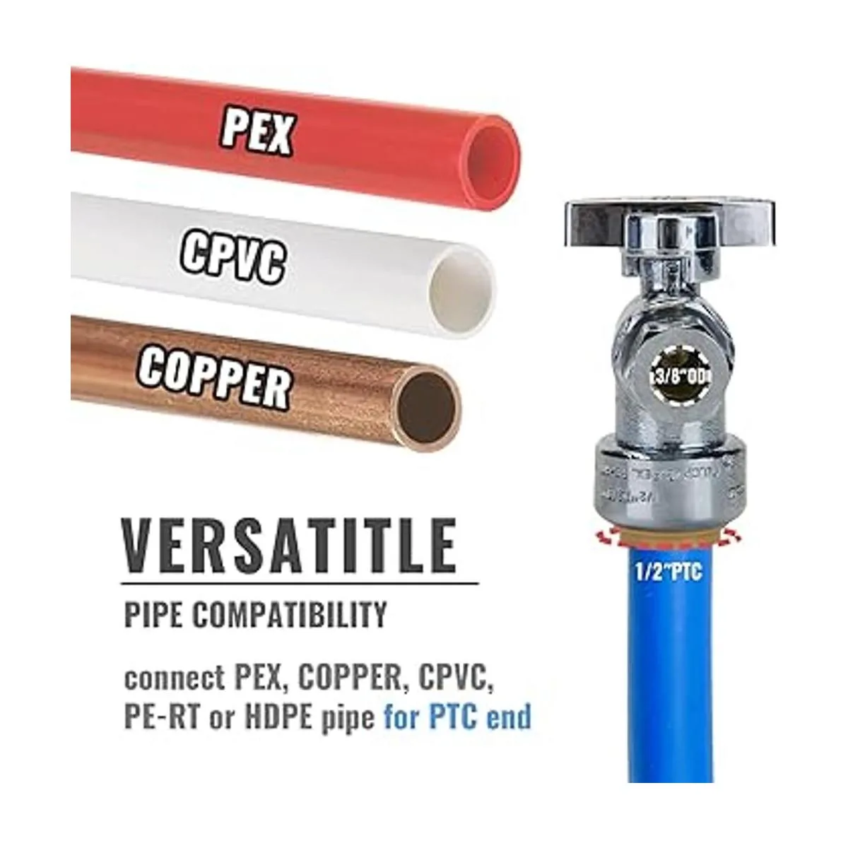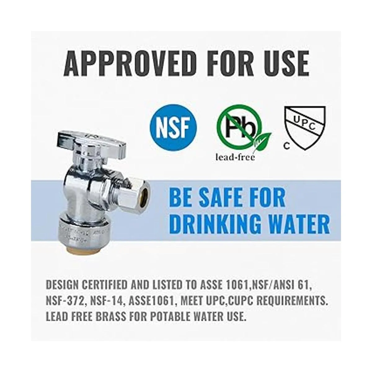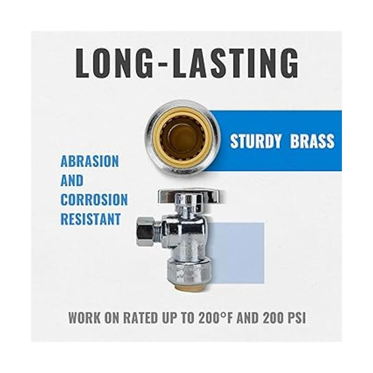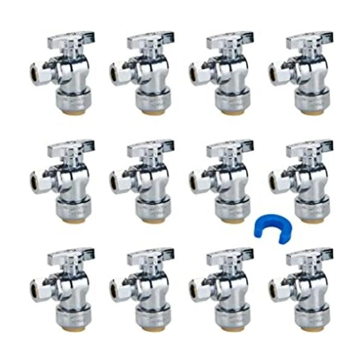 SUNGATOR Paquete de 12 válvulas de parada de ángulo, 12 pulgada Ptc x 38 pulgadas válvula de agua con clip de desconexión, empuje para conectar PEX, cobre, CPVC, cuarto de vueltaapagado, latón sin plomo